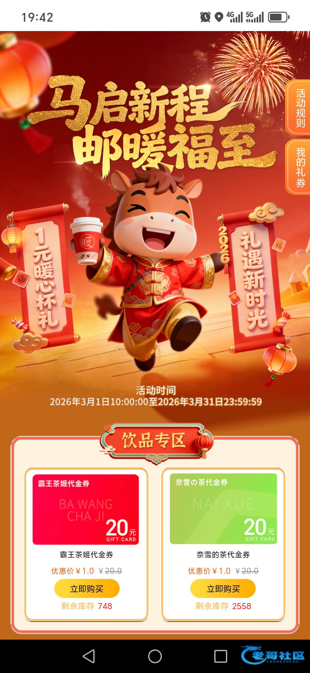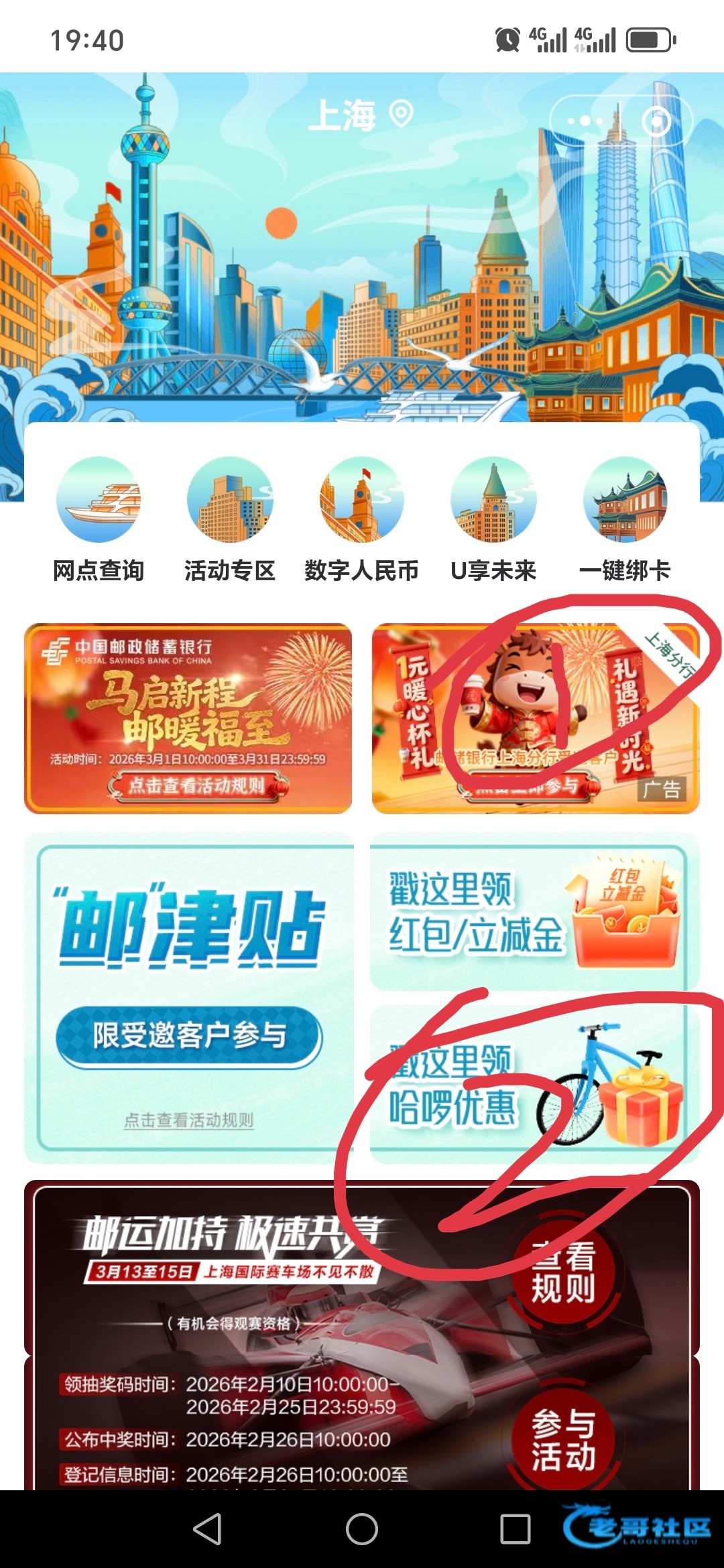 邮储归属地上海,精选区进去1元买20霸王茶姬。下面还有一张哈啰月卡,去出给别人差不多30