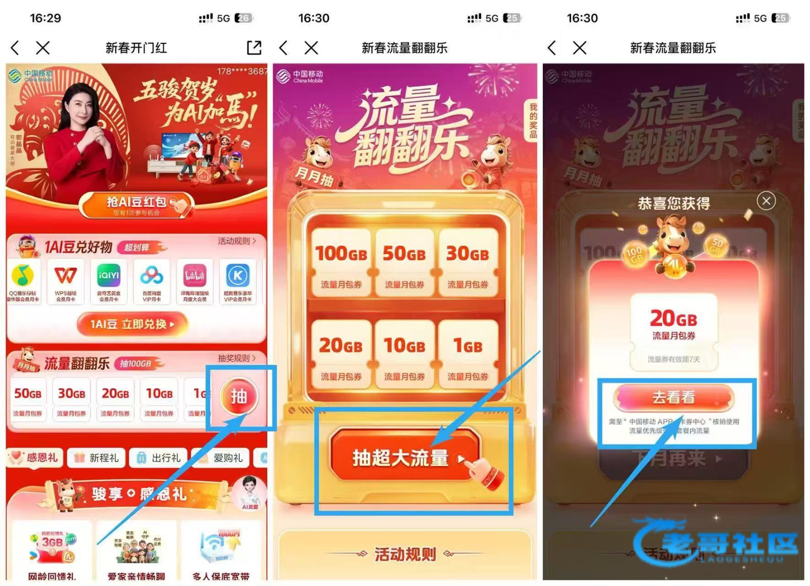 中国移动流量翻翻乐 1~100G