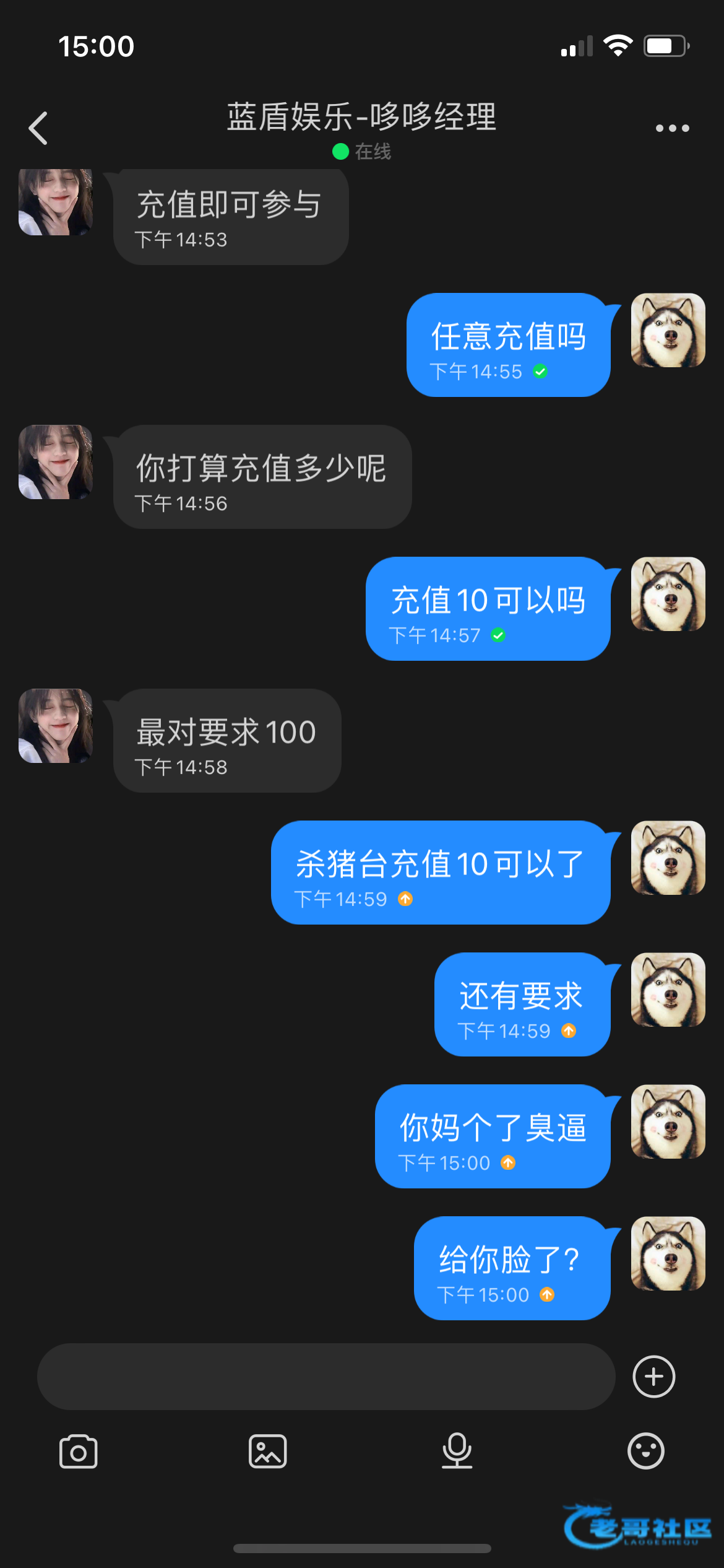 跟她吹牛就行 说先送来玩玩看看有点水再充1000马上给了