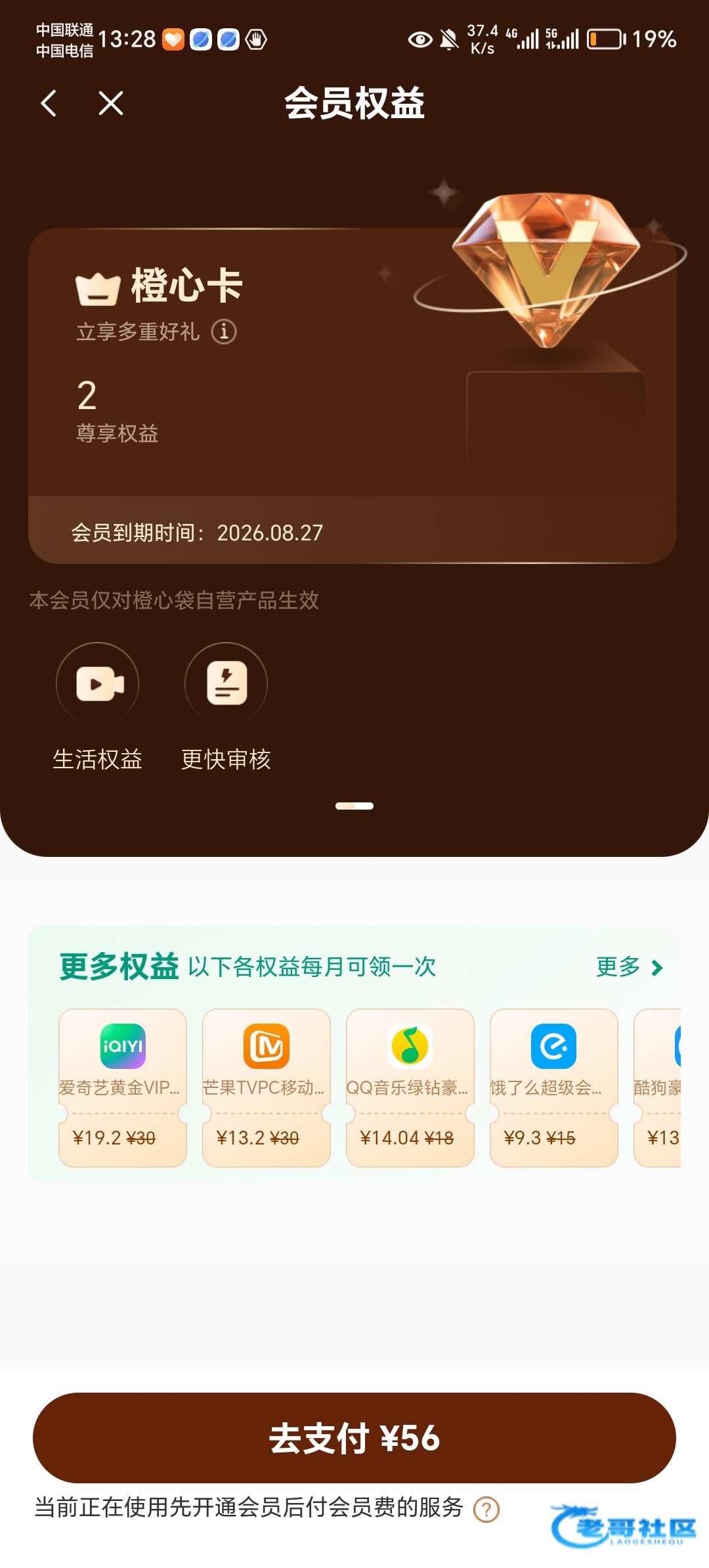 老哥们,会员那个56用不用付啊,我这个银行卡非柜了,