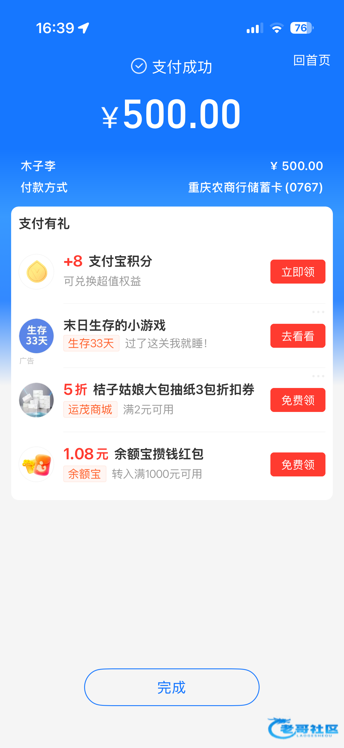 今天下午洗白8000,老哥能不能借20吃饭