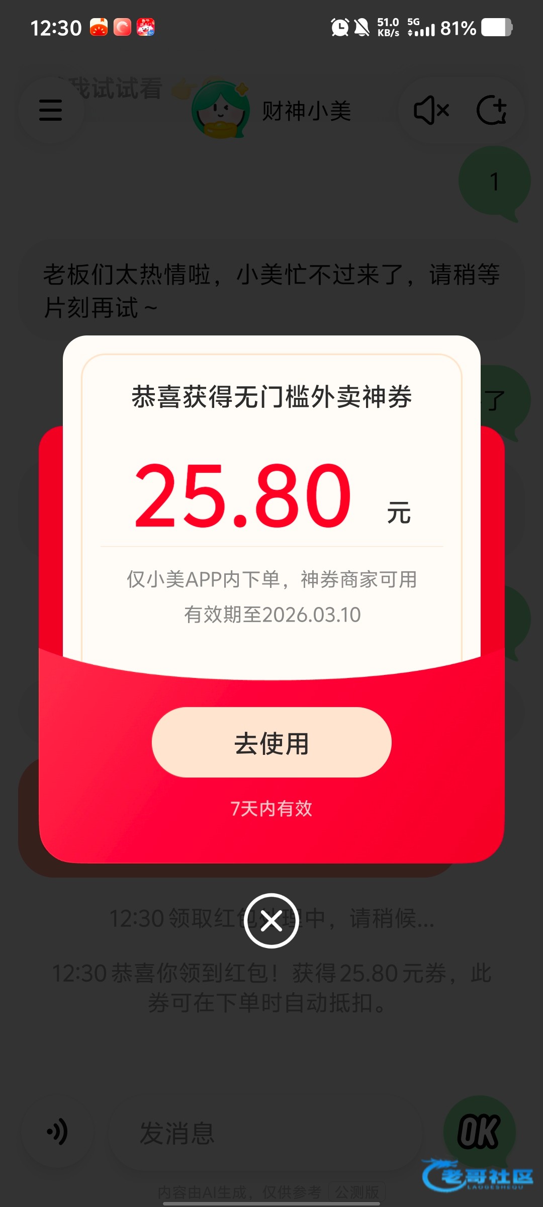 老板们太热情啦,小美忙不过来了,请稍等片刻再试~