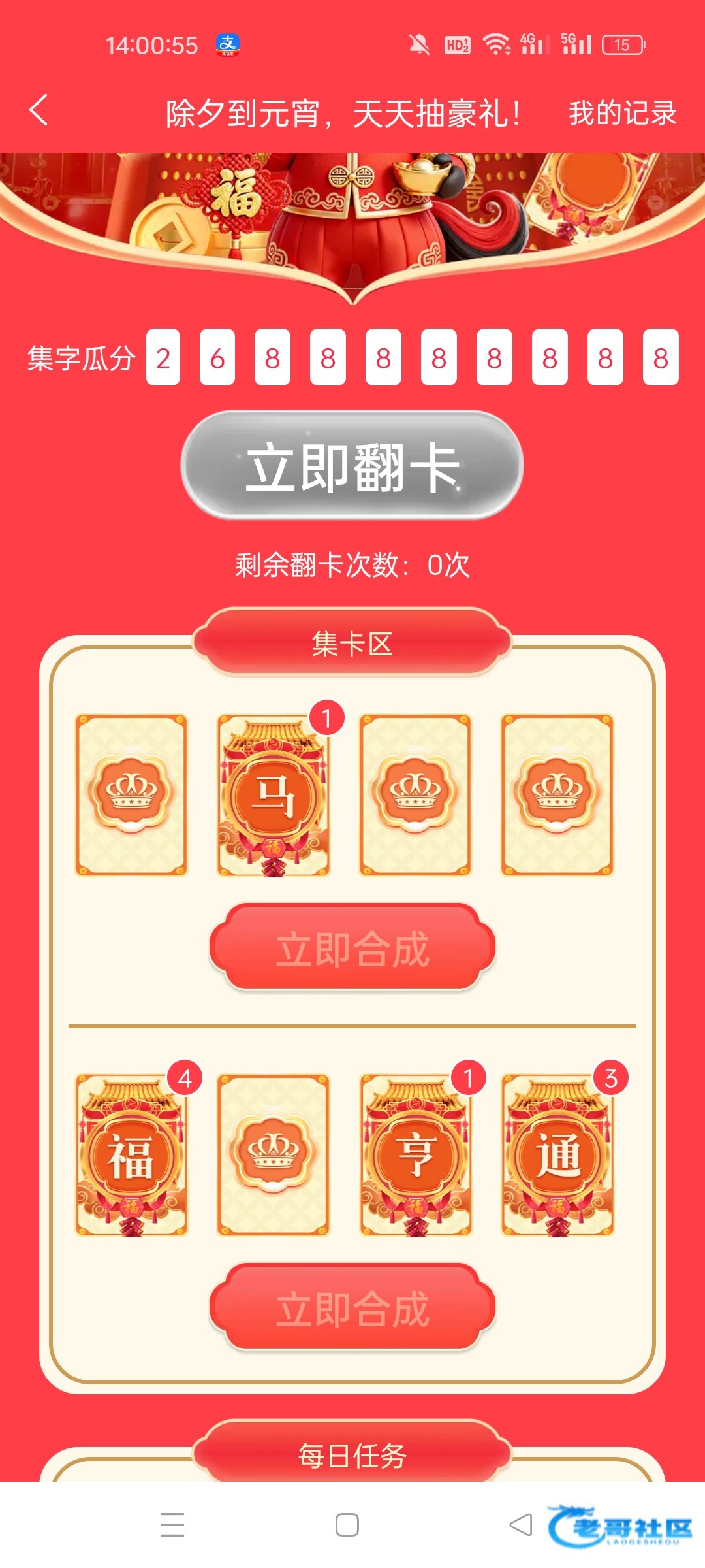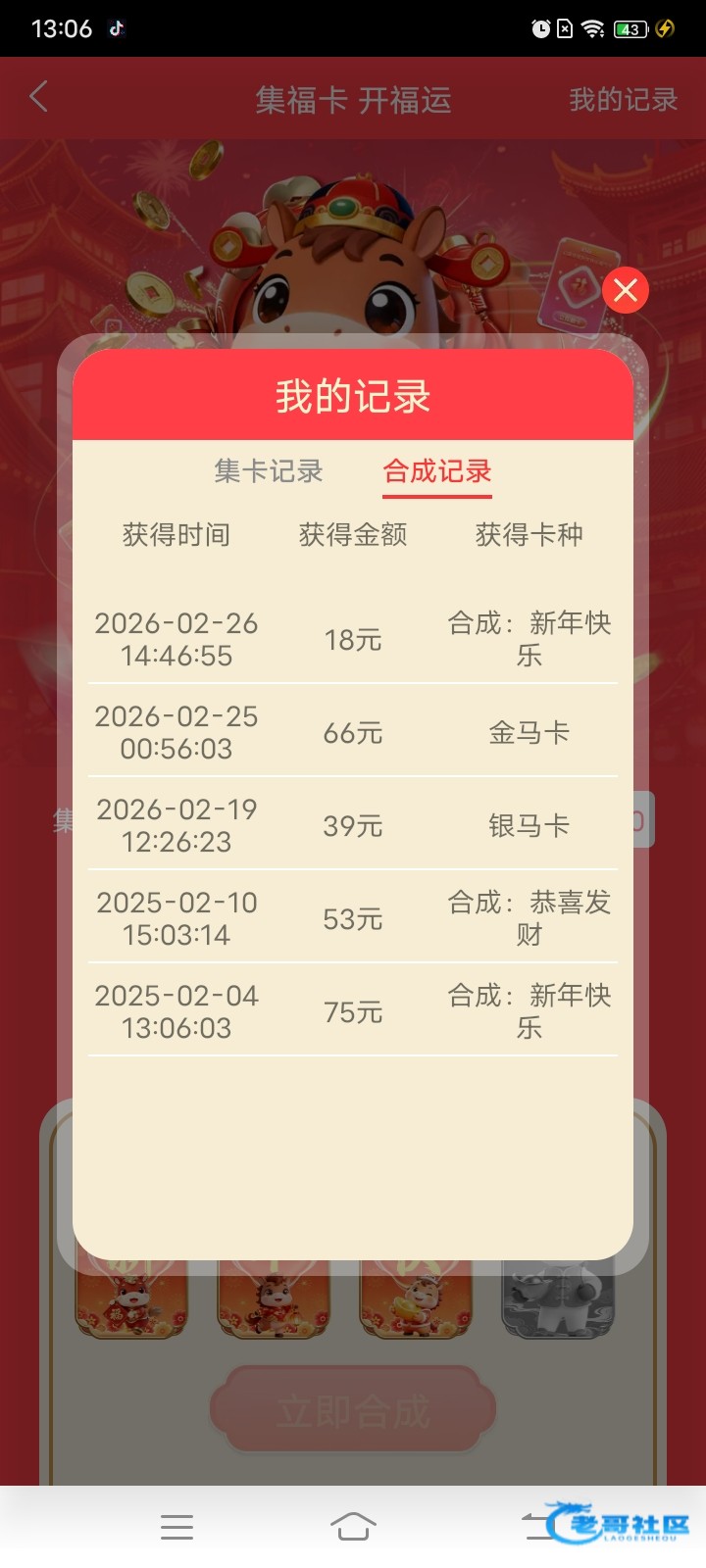 大家精彩系春节集卡活动都白嫖了多少我大发中规中矩合成了3次玩彩网最逼黑一次没合
