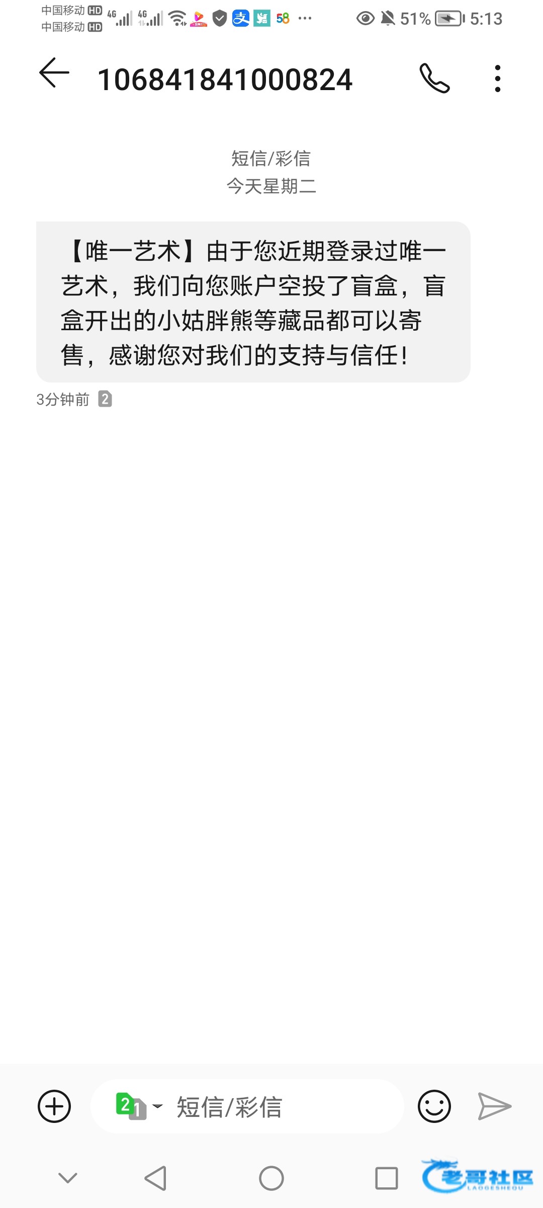 唯一艺术收到这个信息不知道是不是真的