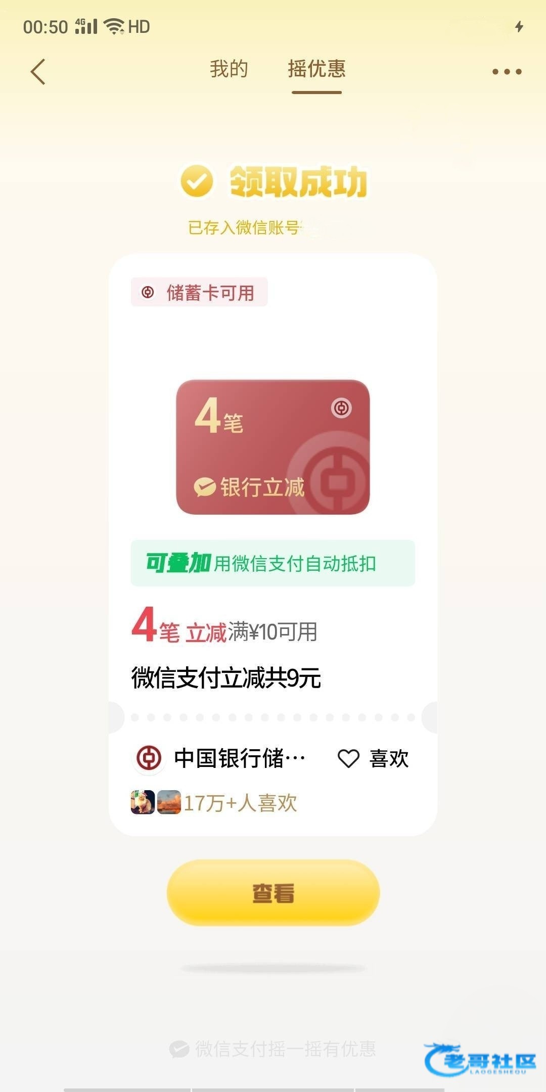 【微信摇一摇中行立减】