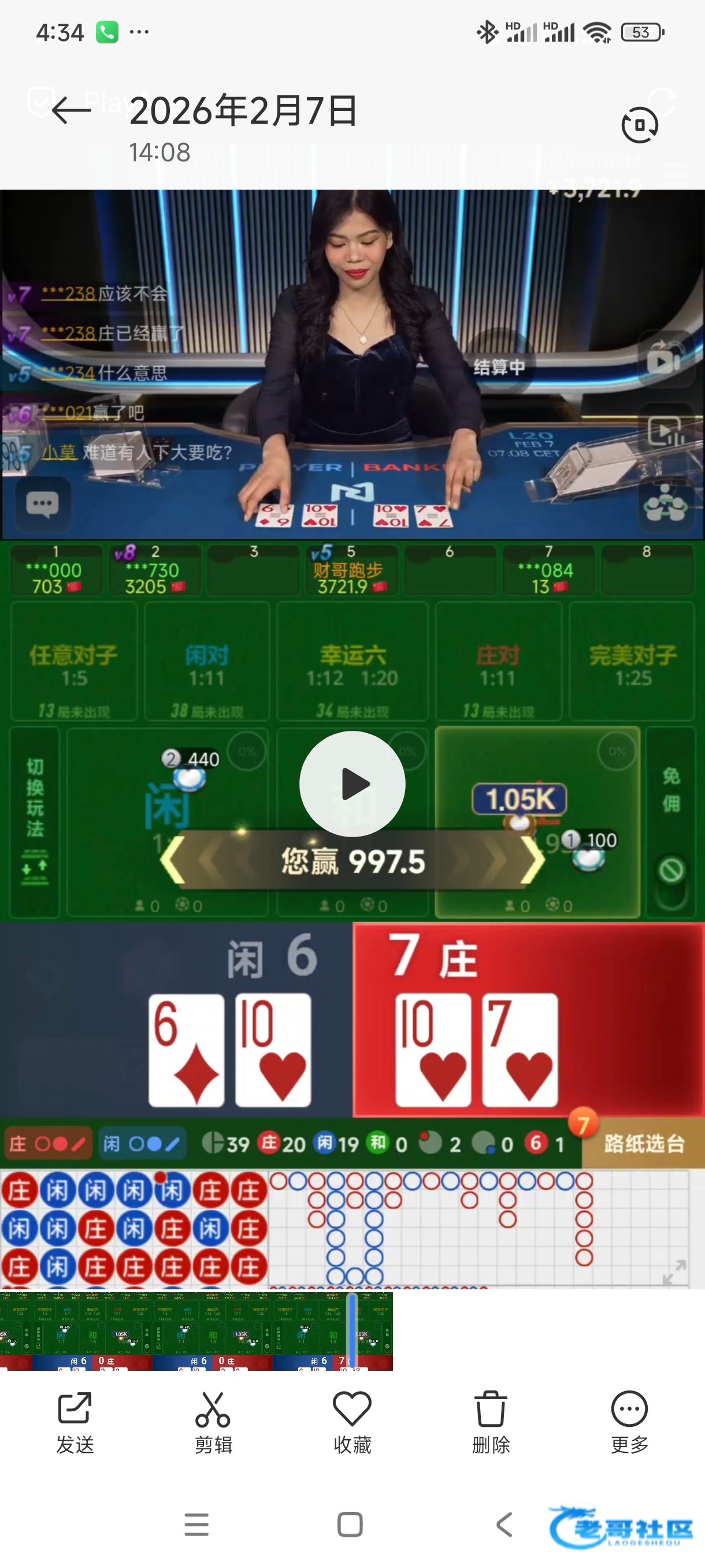 我草老哥这局我也在,我记得是牌发错了然后闲9杀庄7。刚看了你我上号一看注单被改成和了。