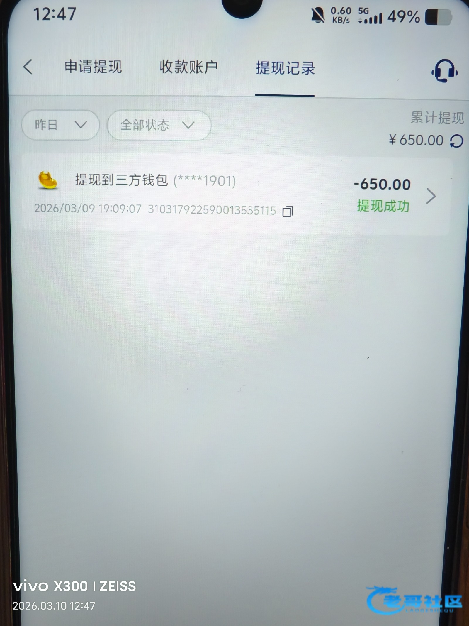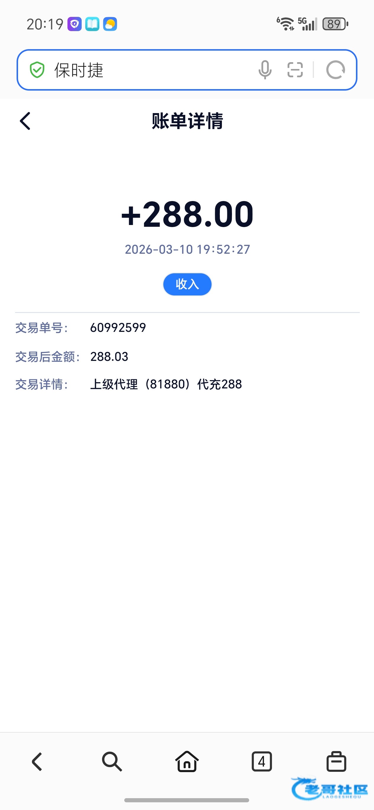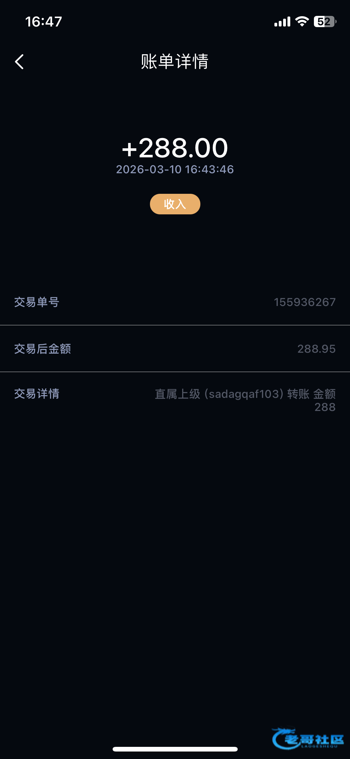 收到老哥 返现288