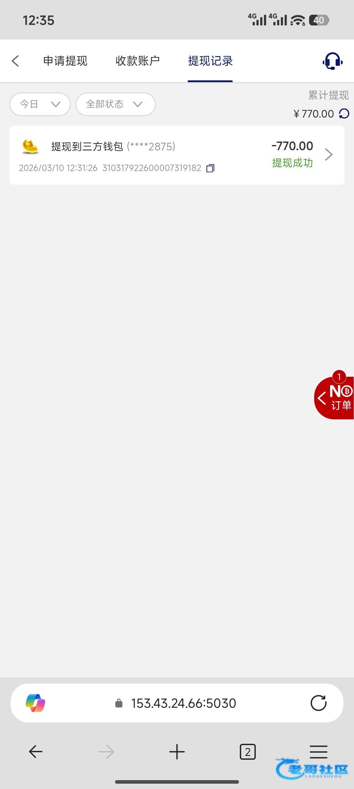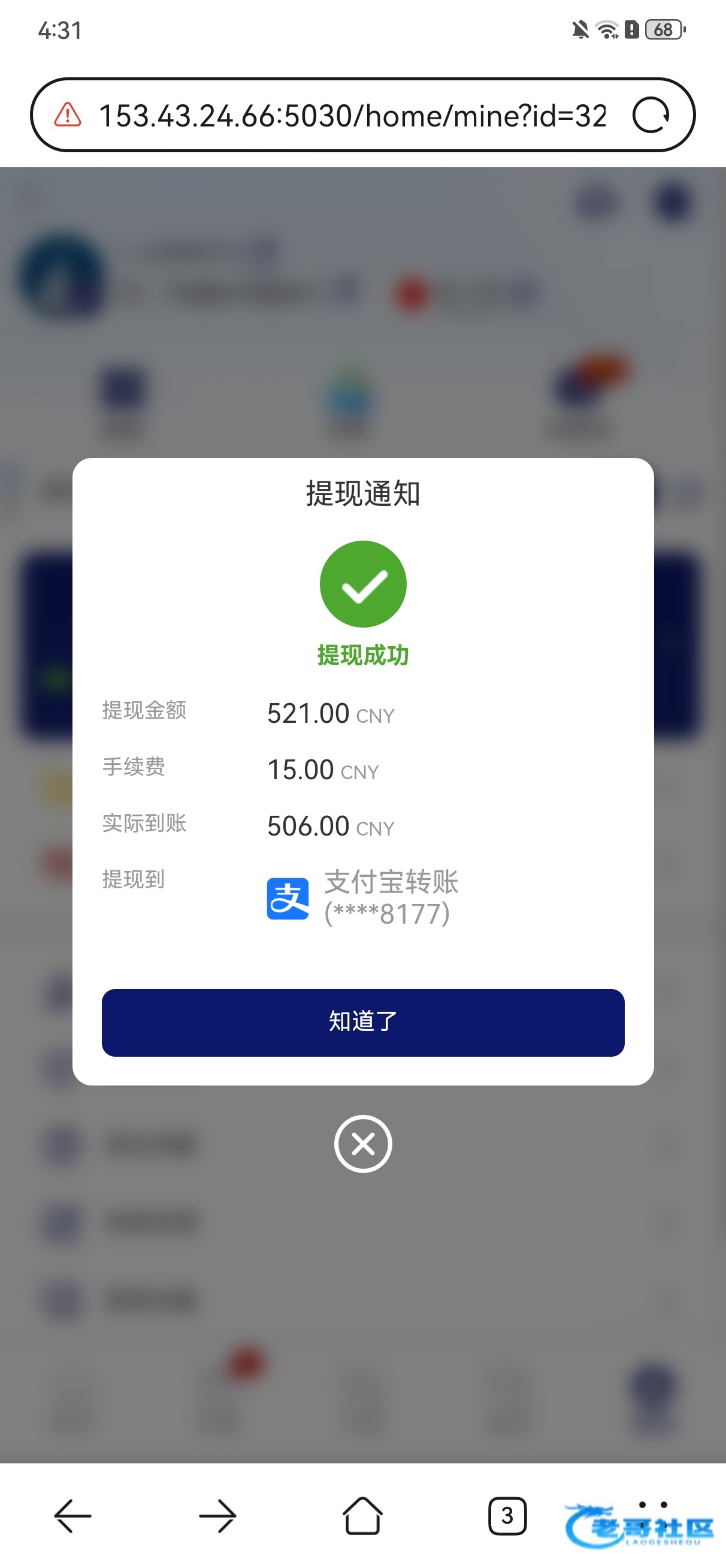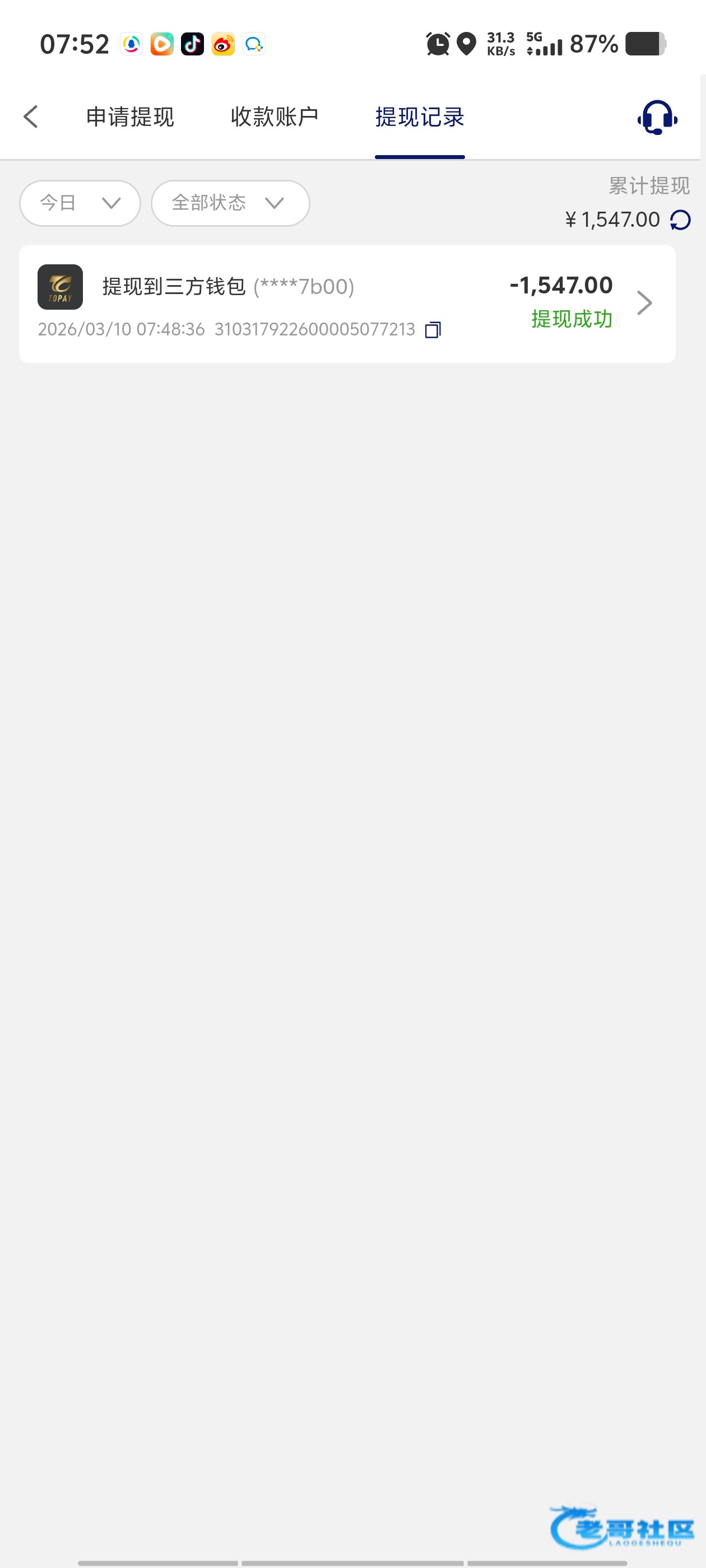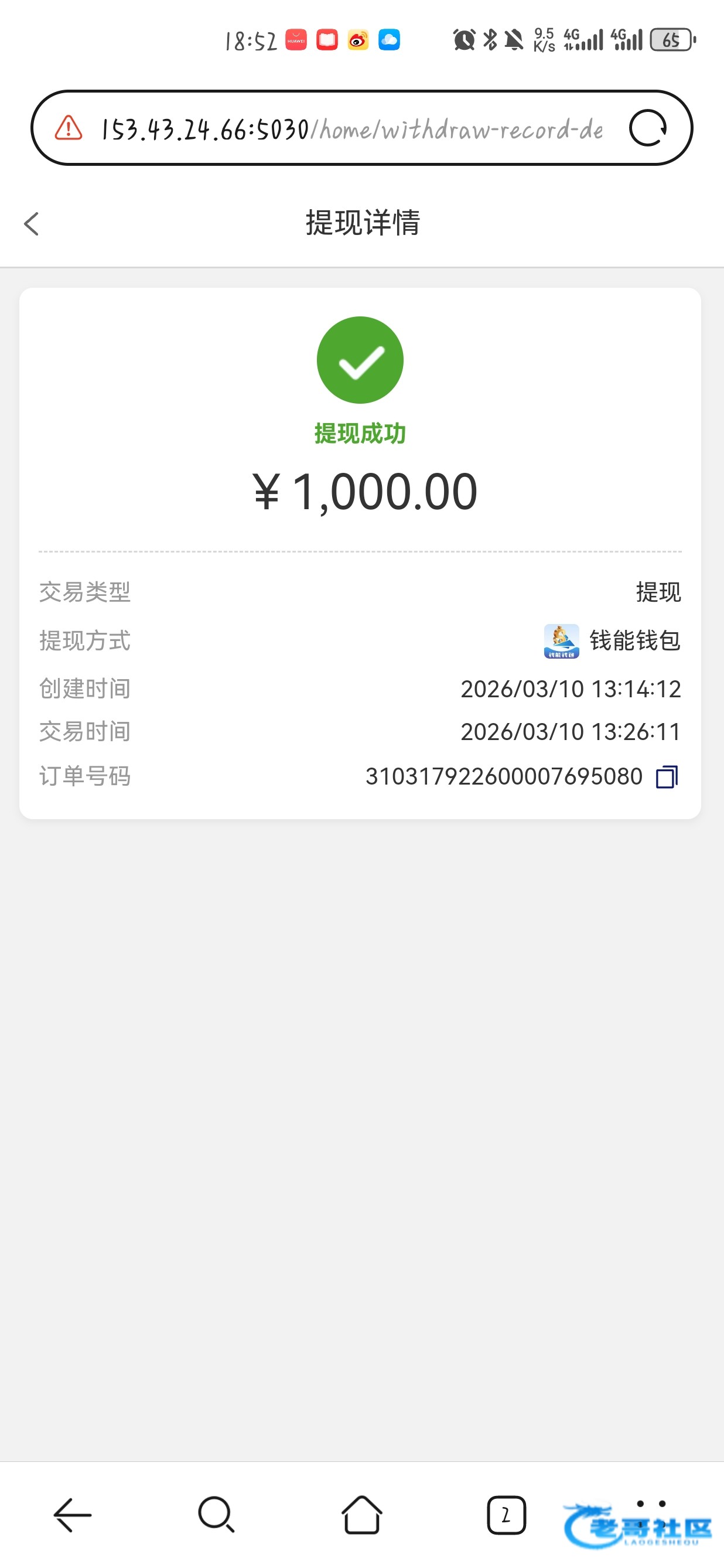 收到老哥返现 稳