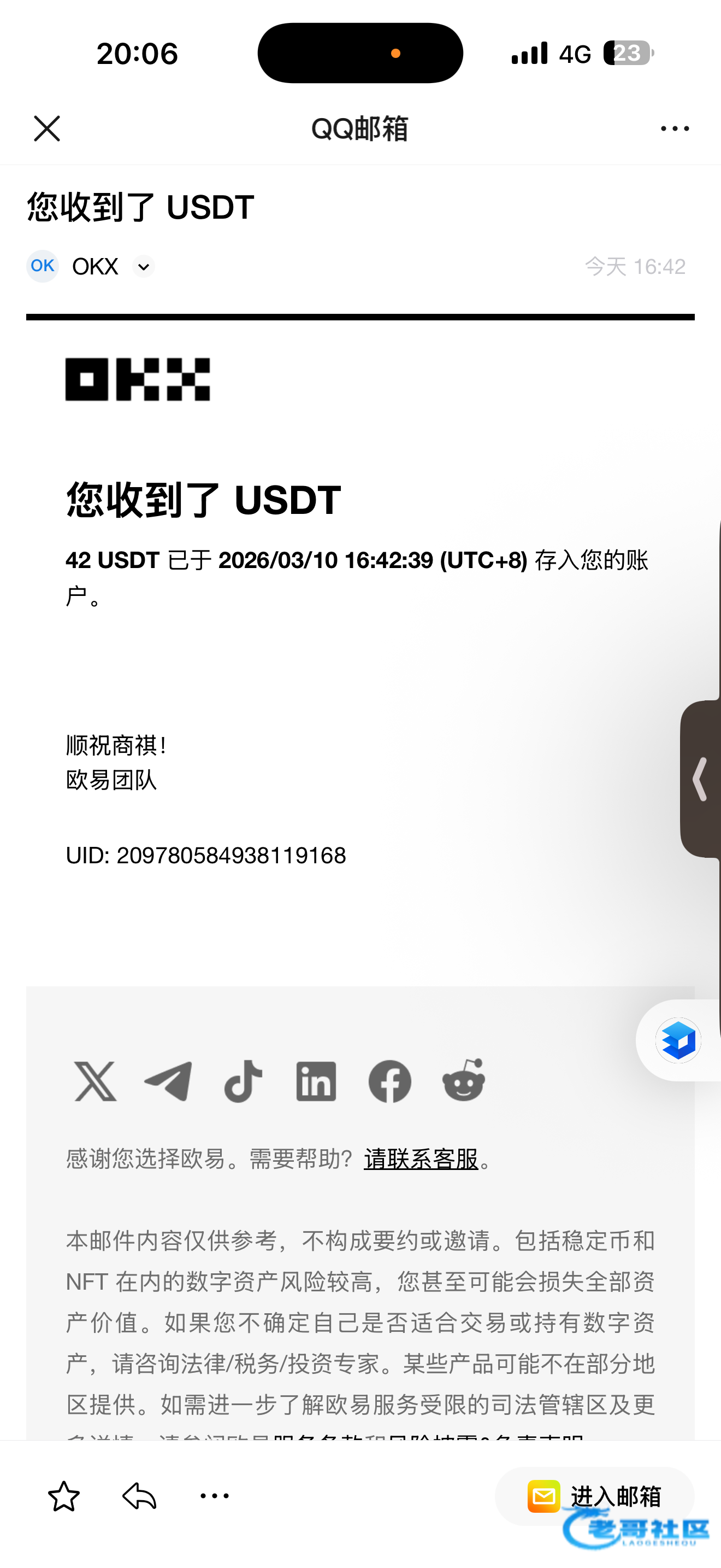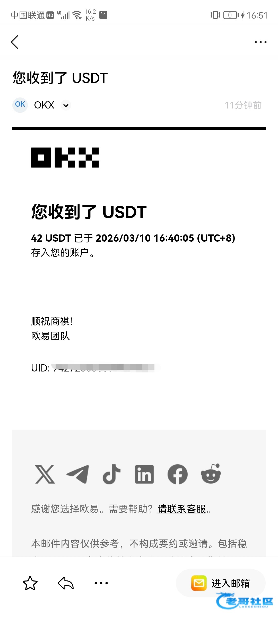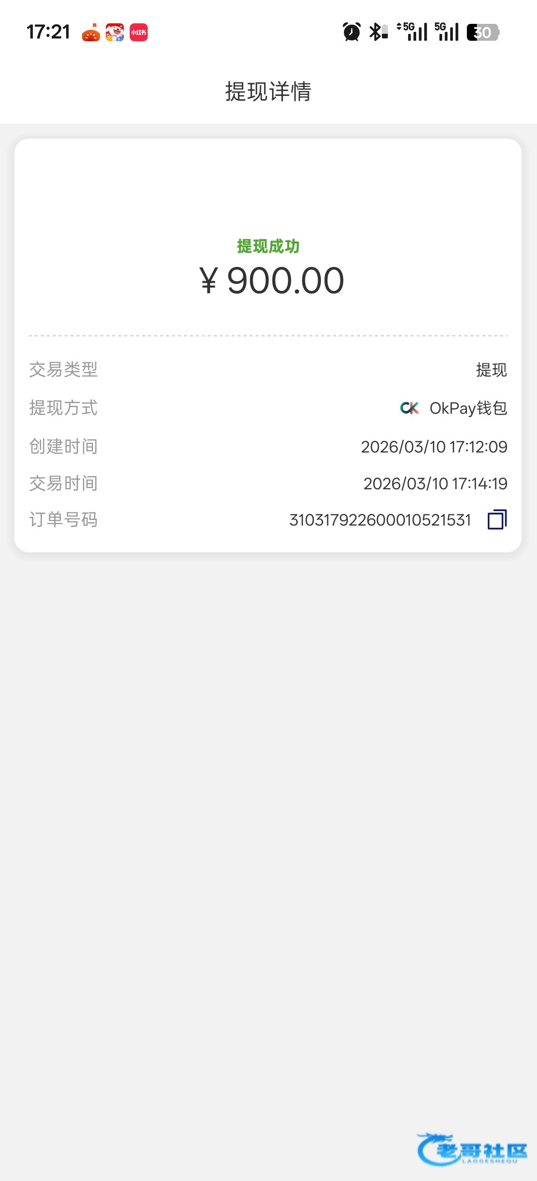 收到老哥返现