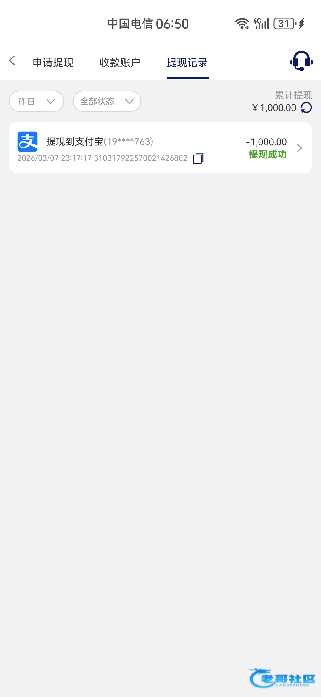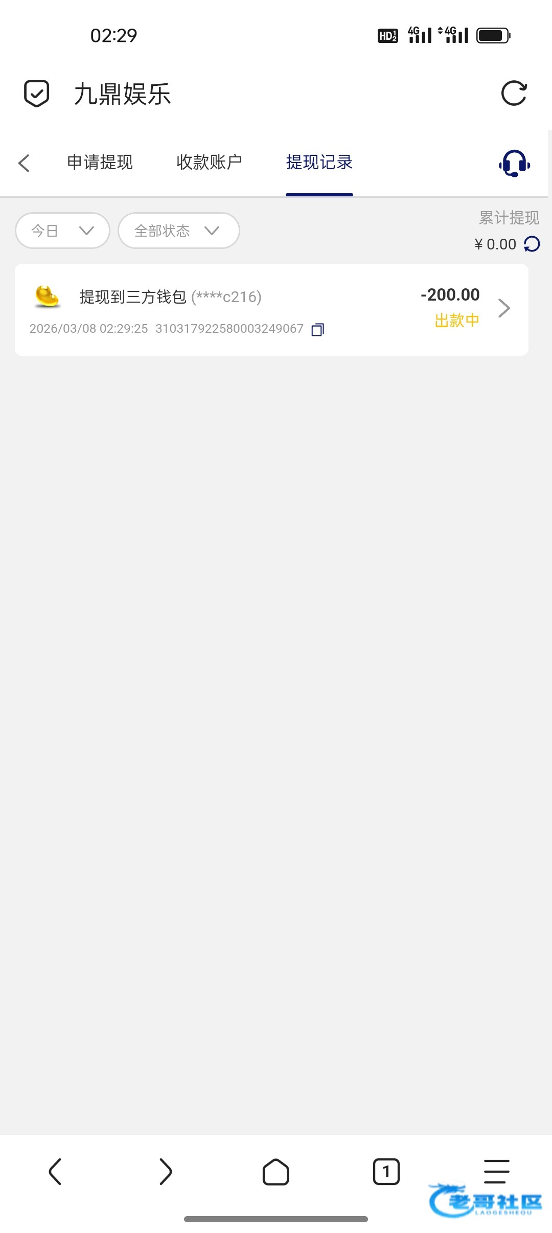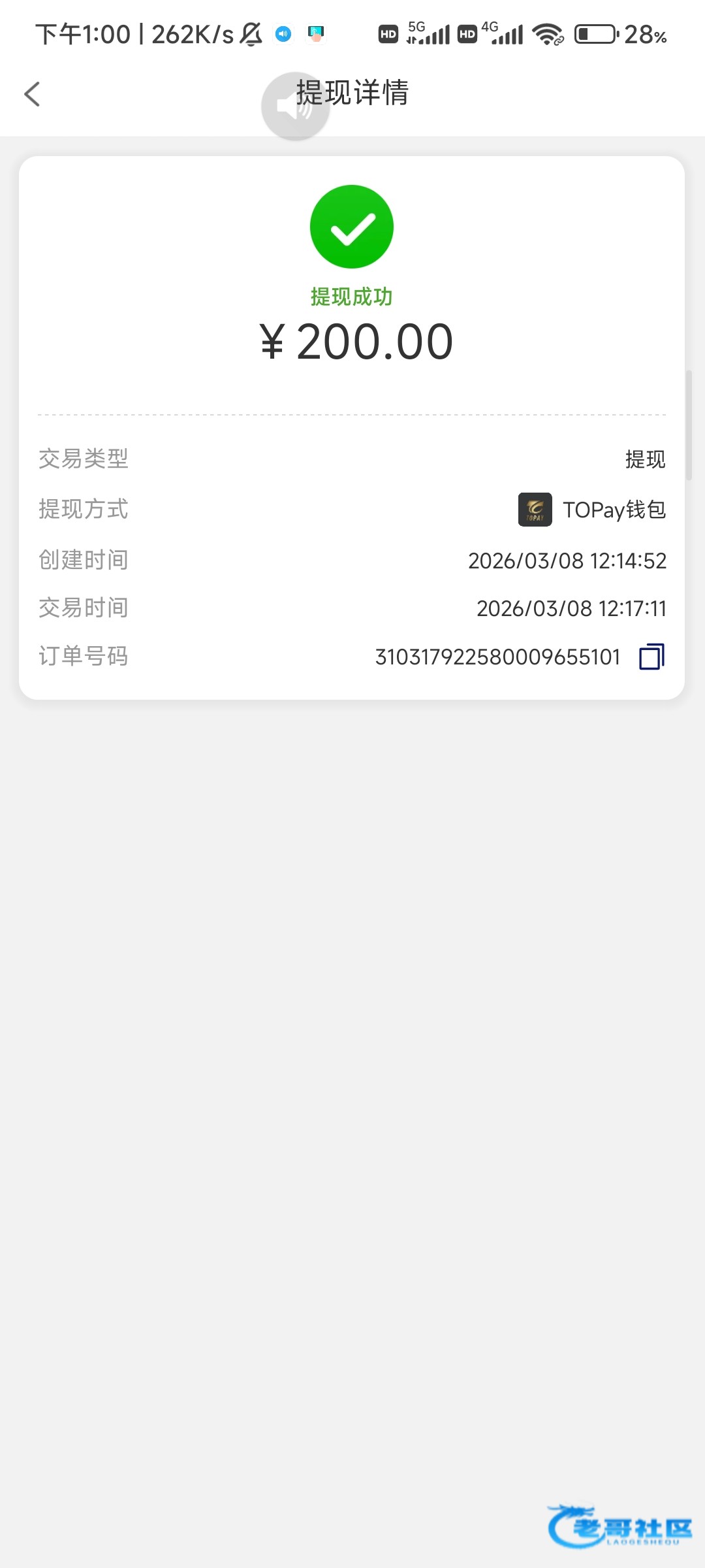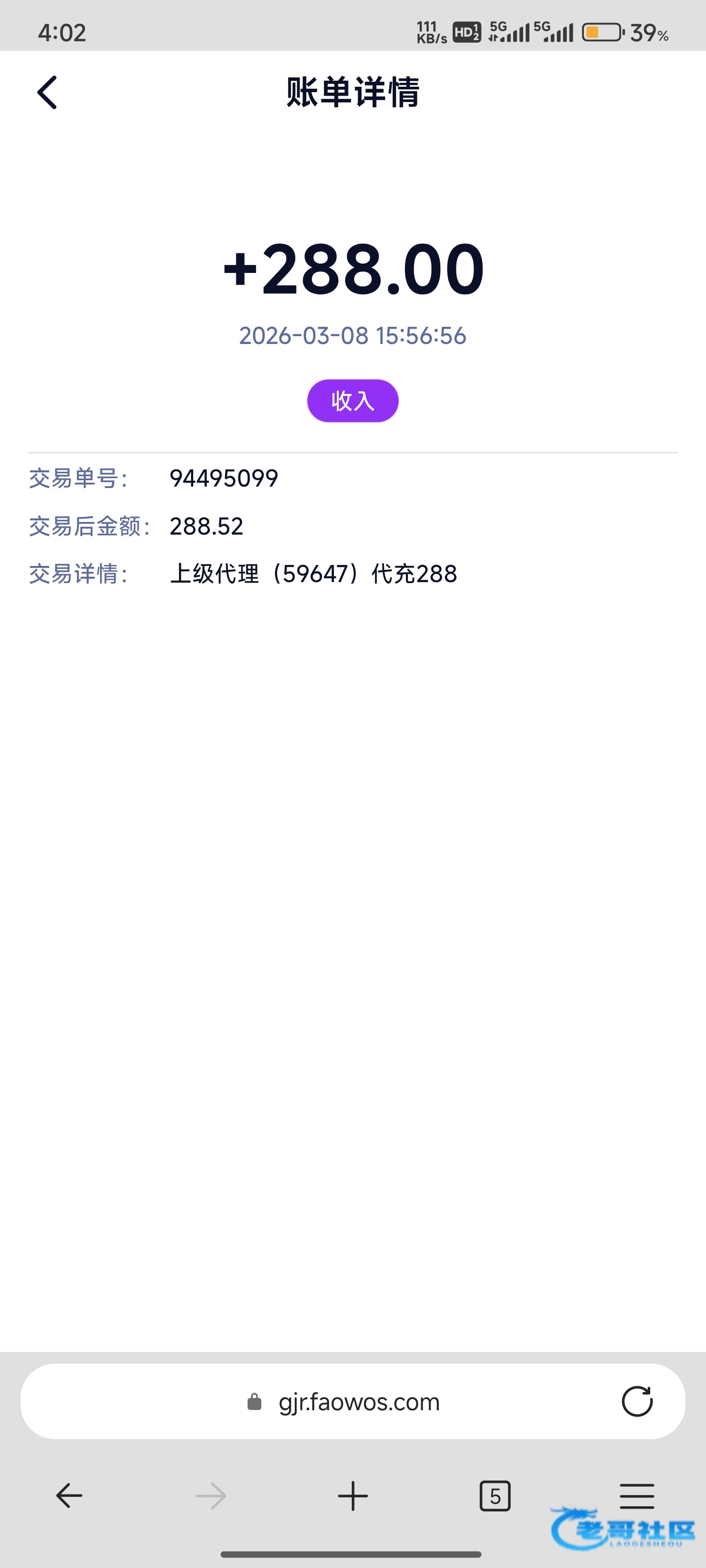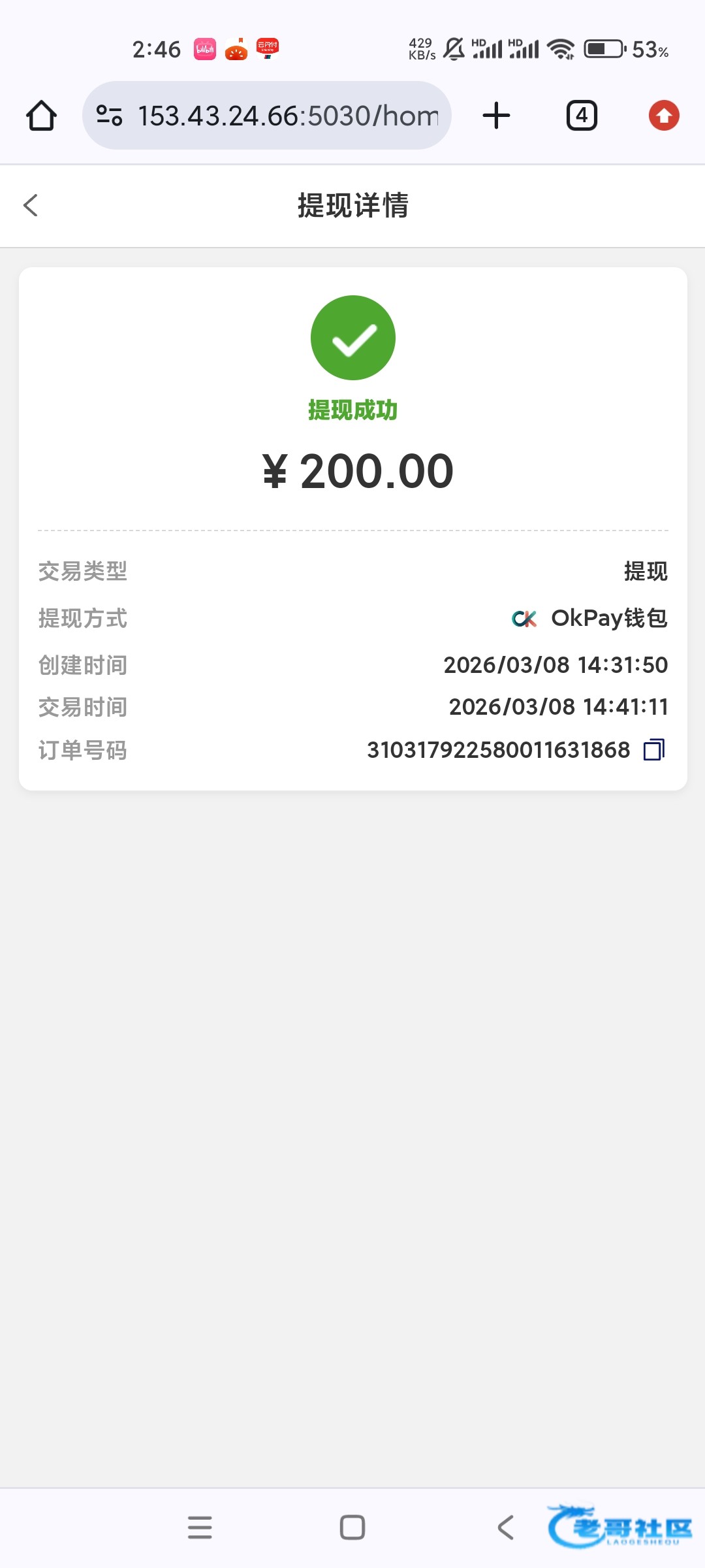 收到老哥288返现