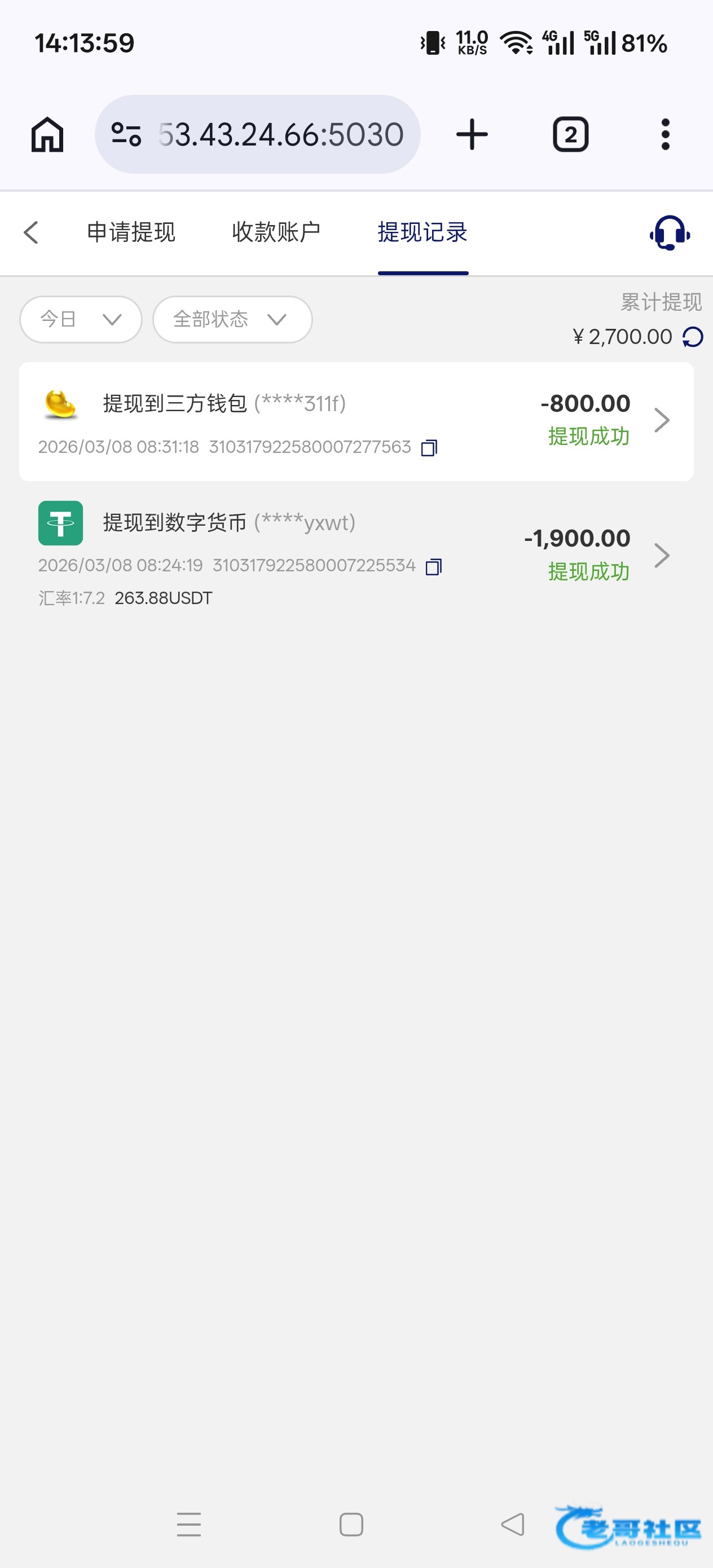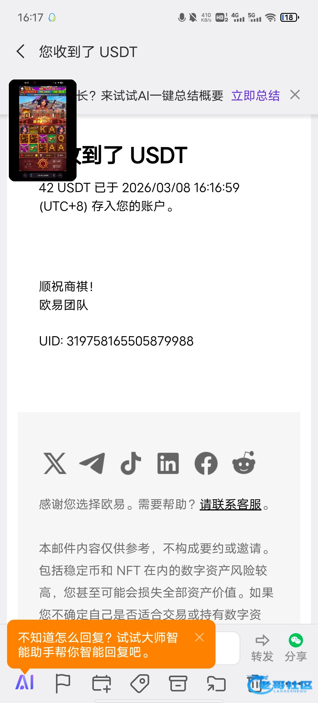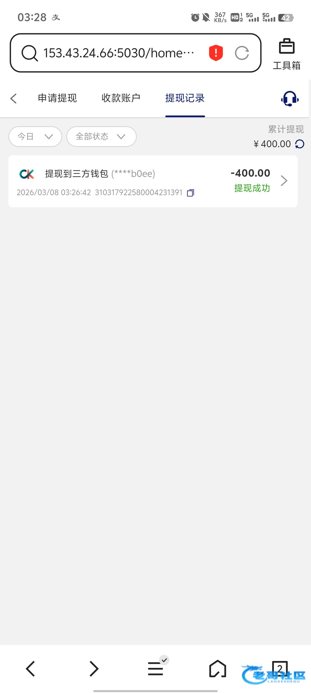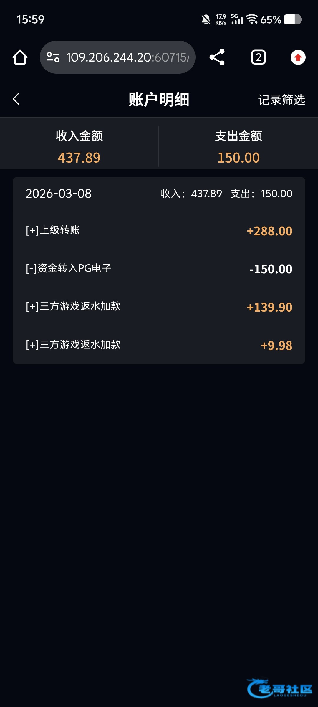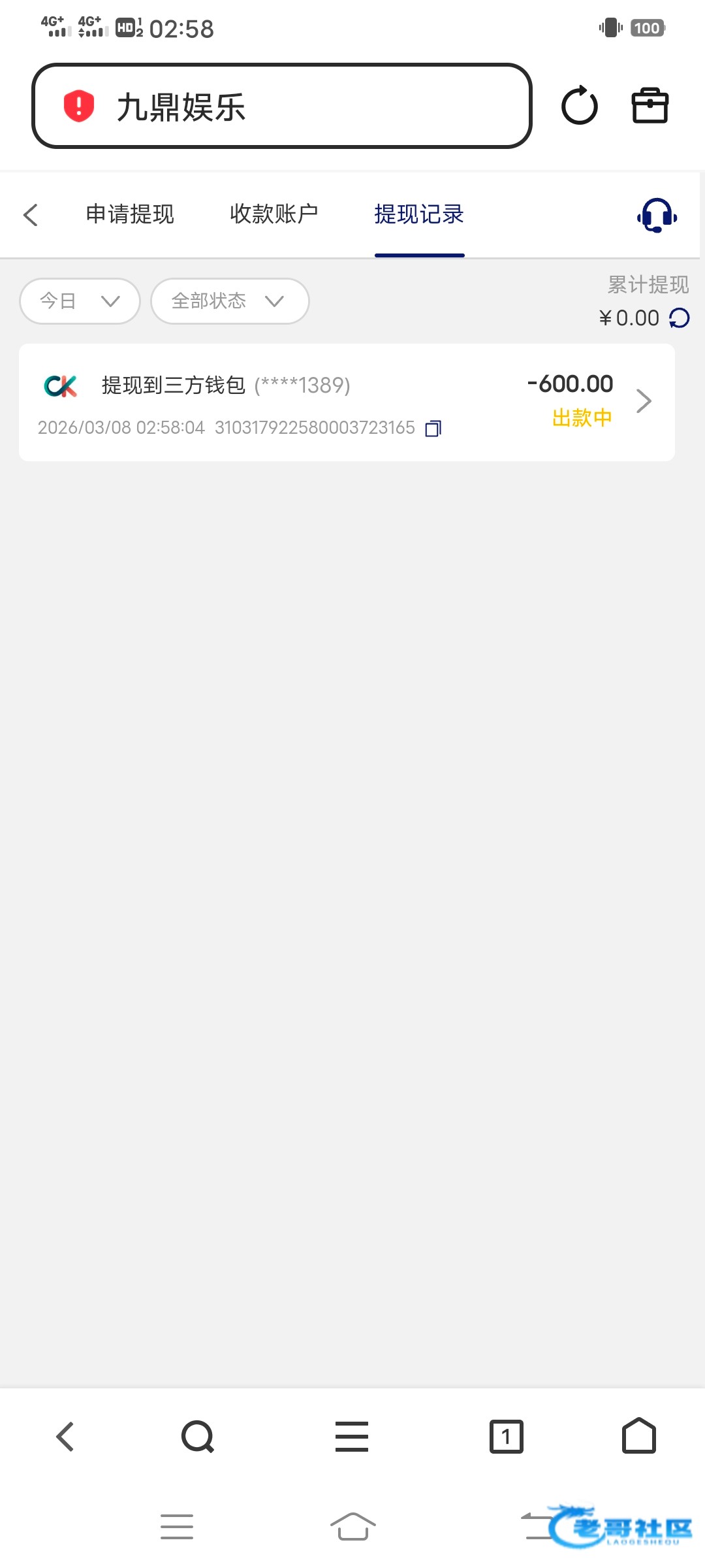 收到老哥288返现