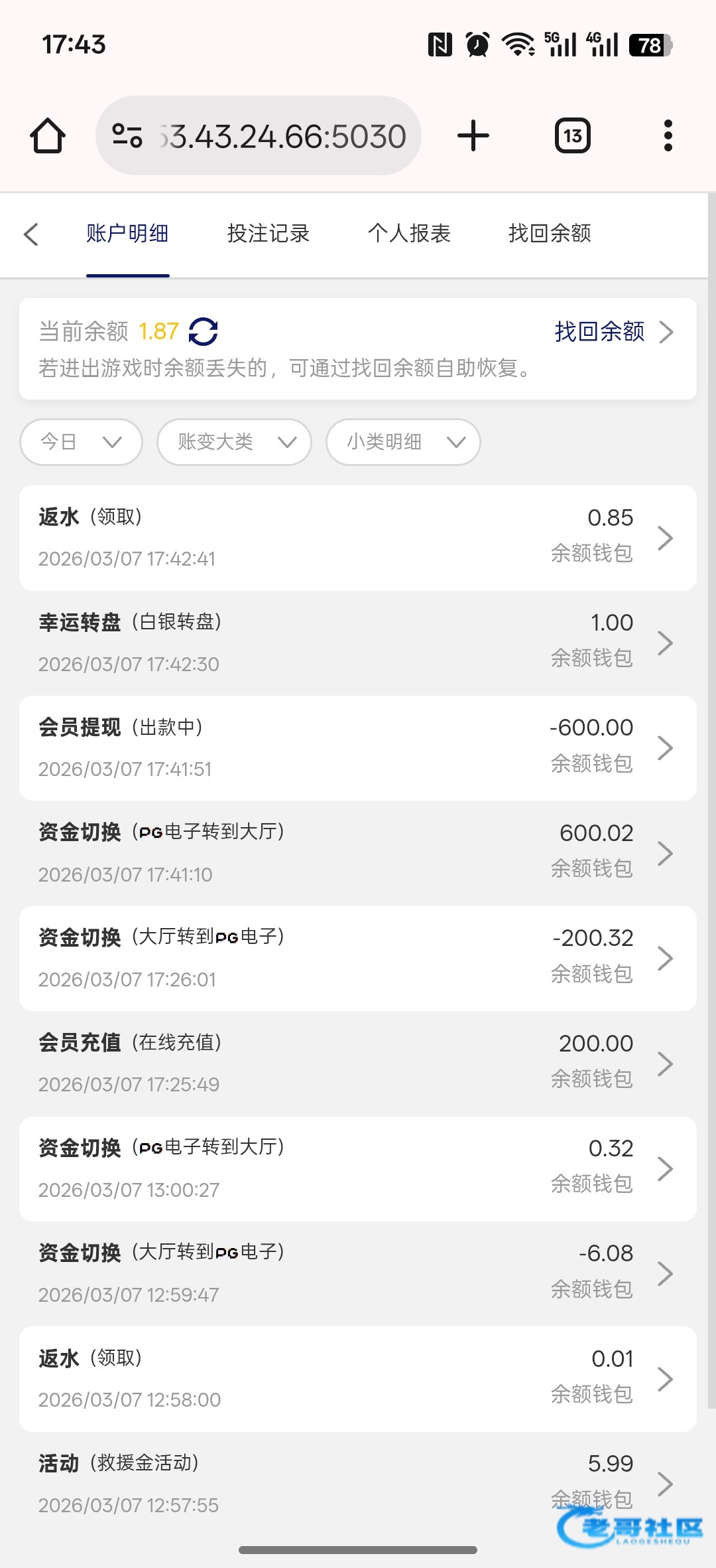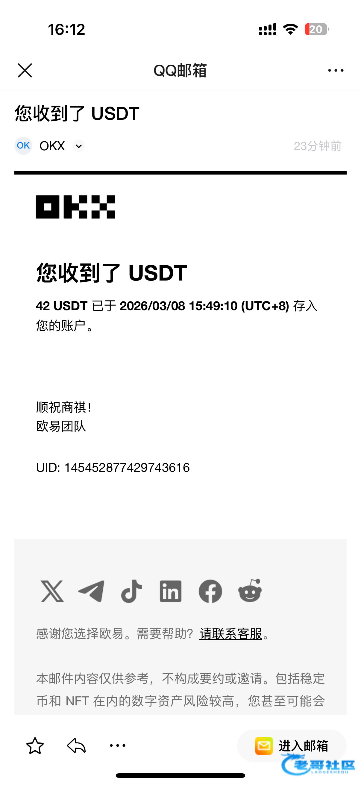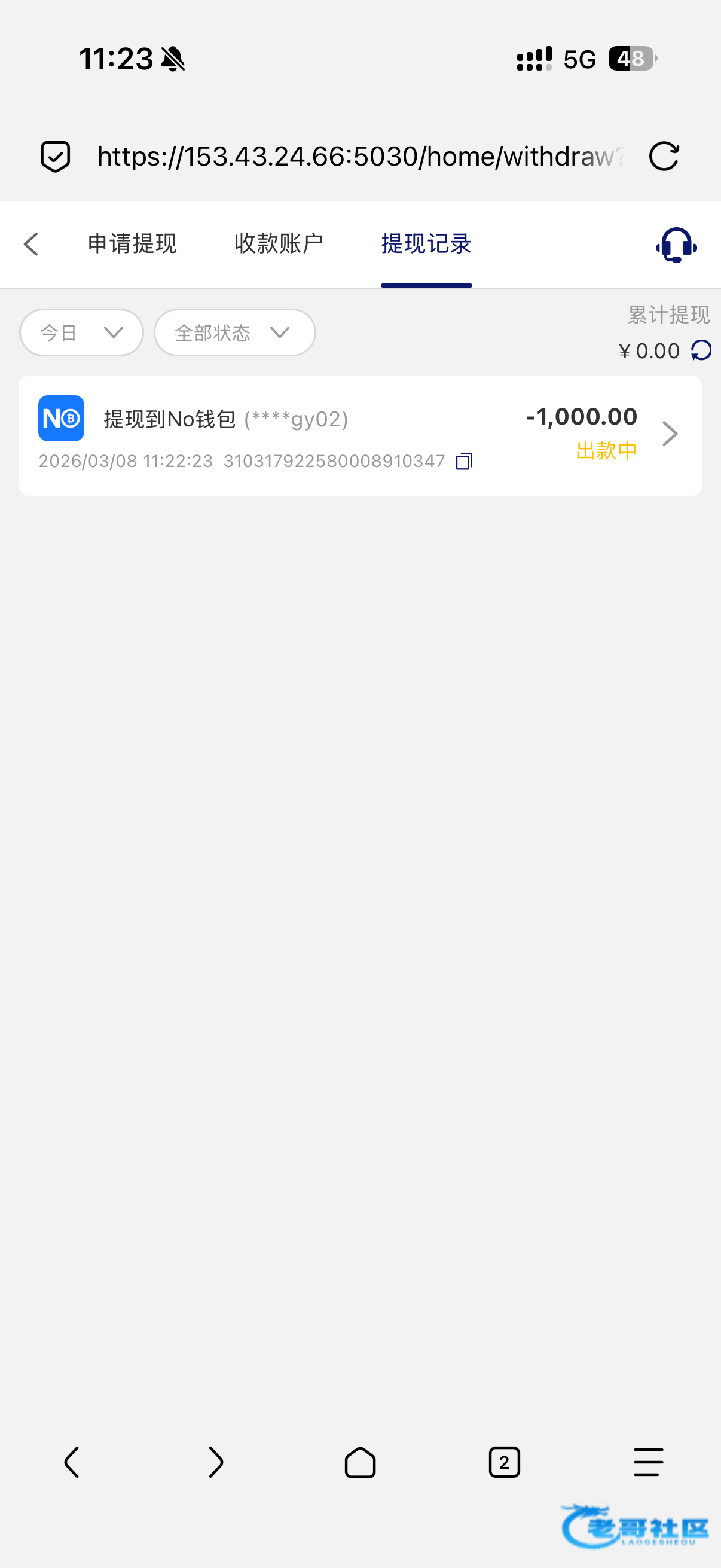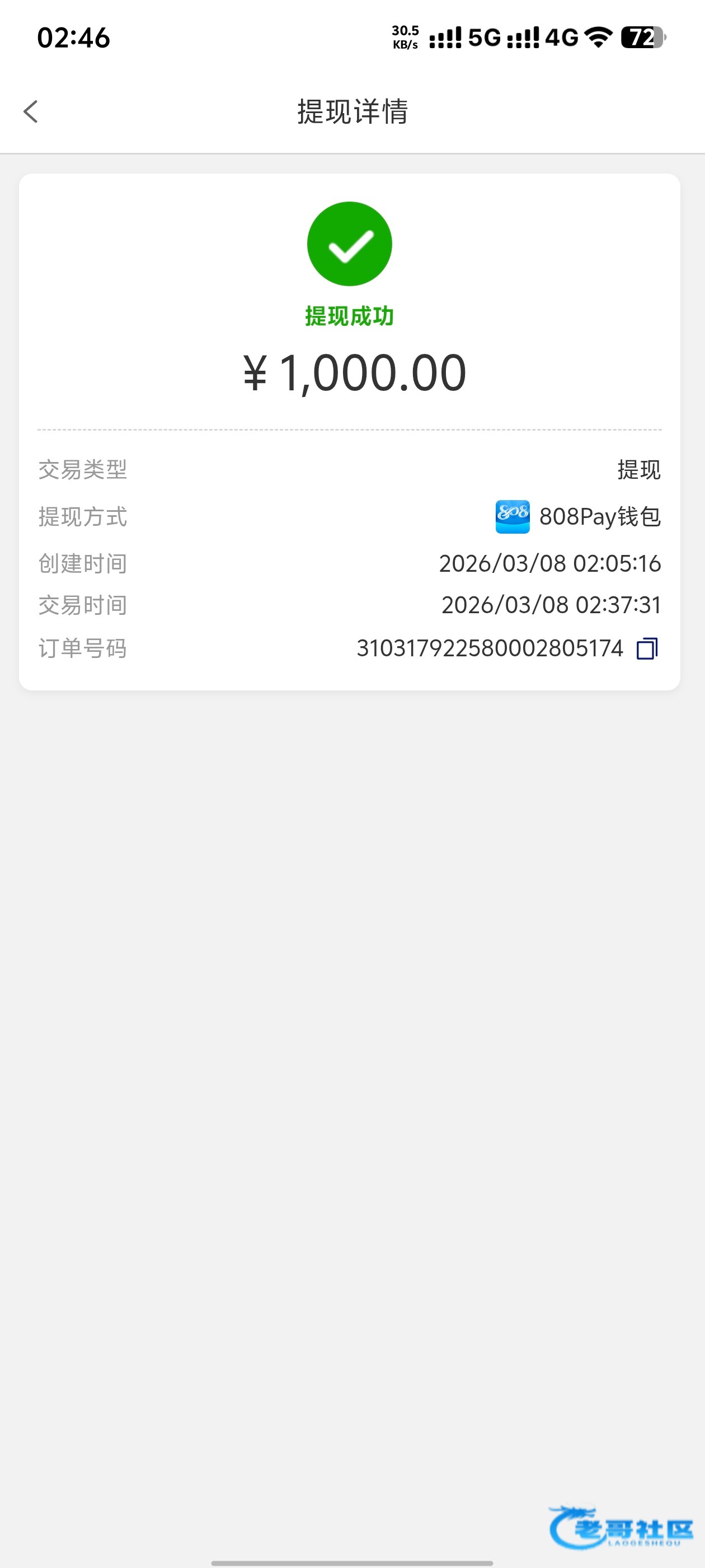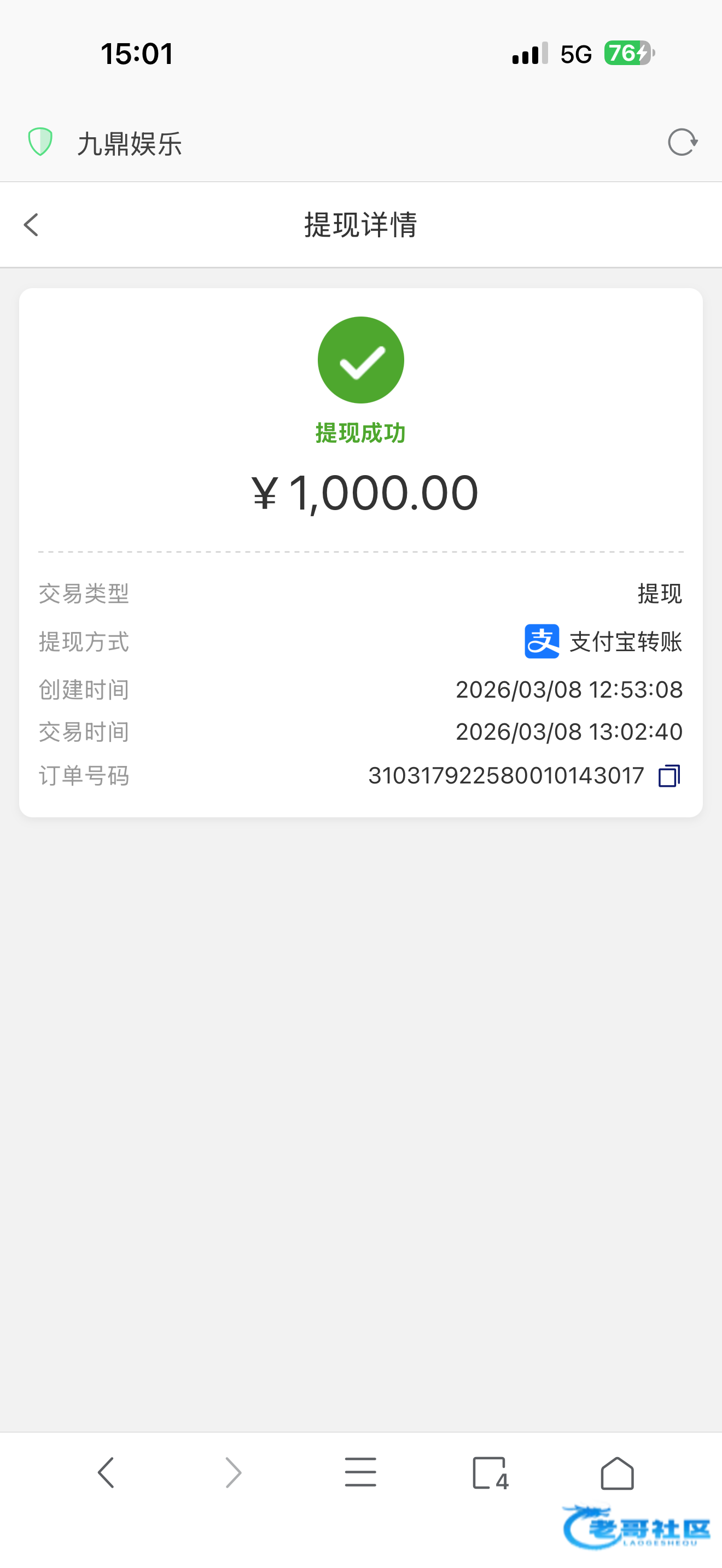 收到老哥返现