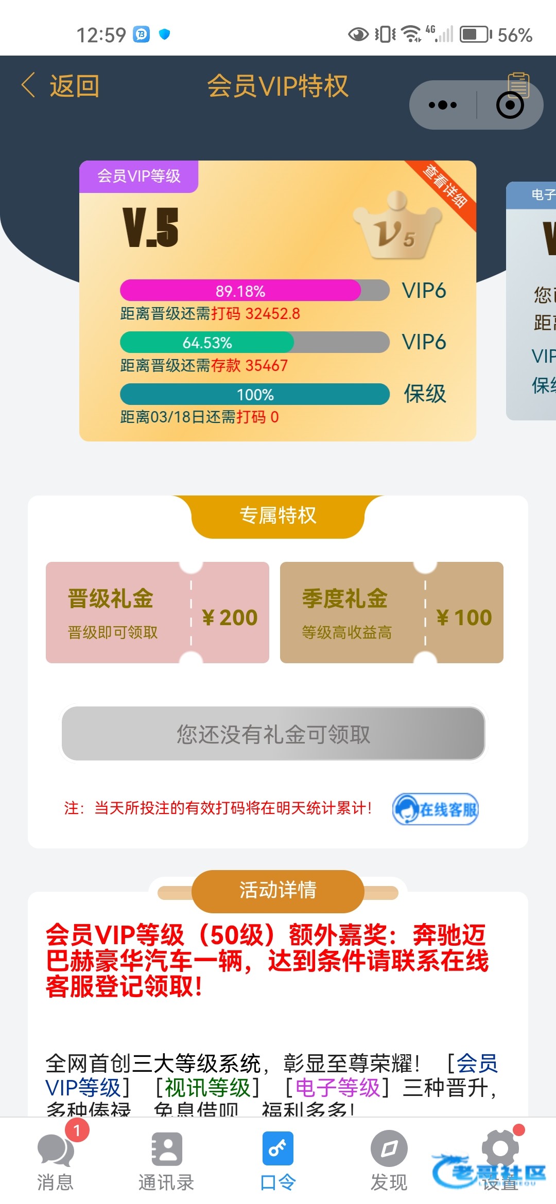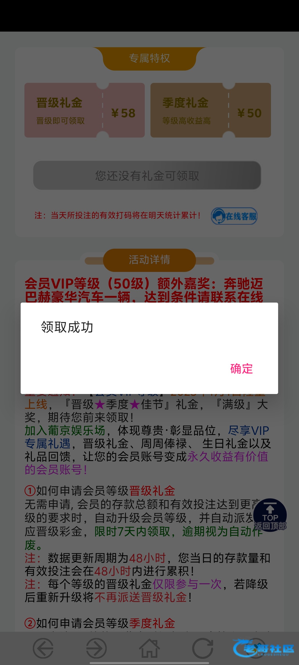 今天3.6日8733.com 有vip等级去领取季度礼金,领了100,白嫖500,又得吃了,有等级的去看看,没有勿怪
