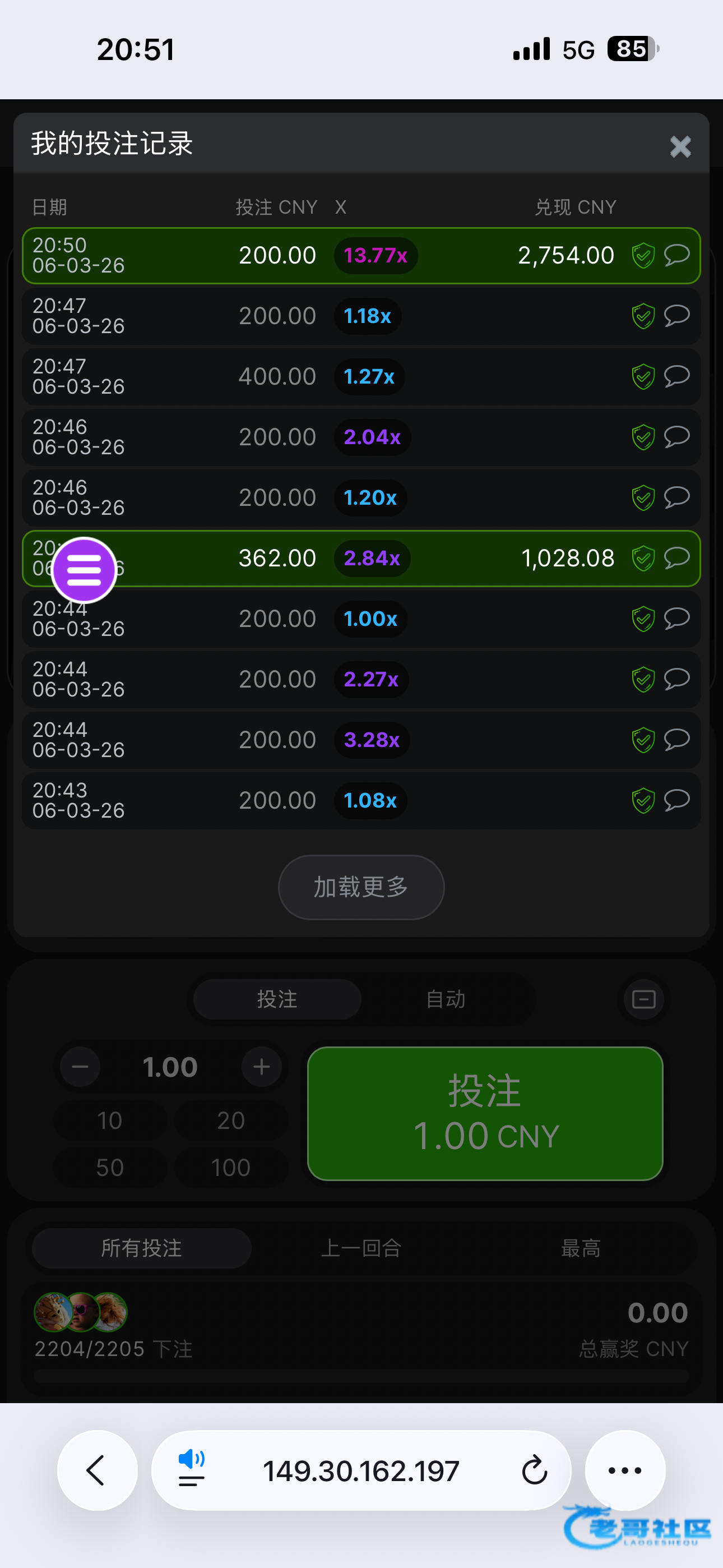 本来已经输了1300又上1000刚买200结果卡了2倍就收,游戏连接超时,在刷新进入赢了2700