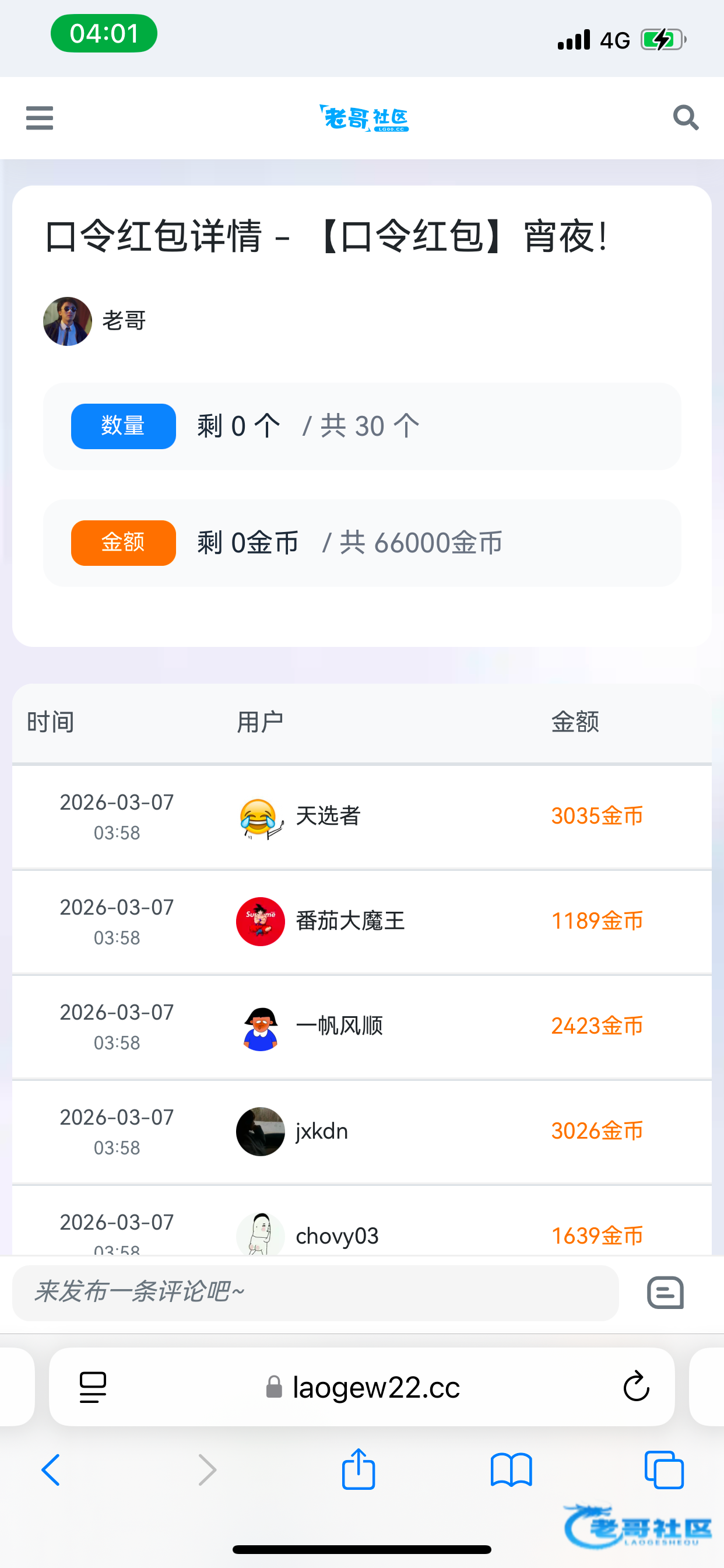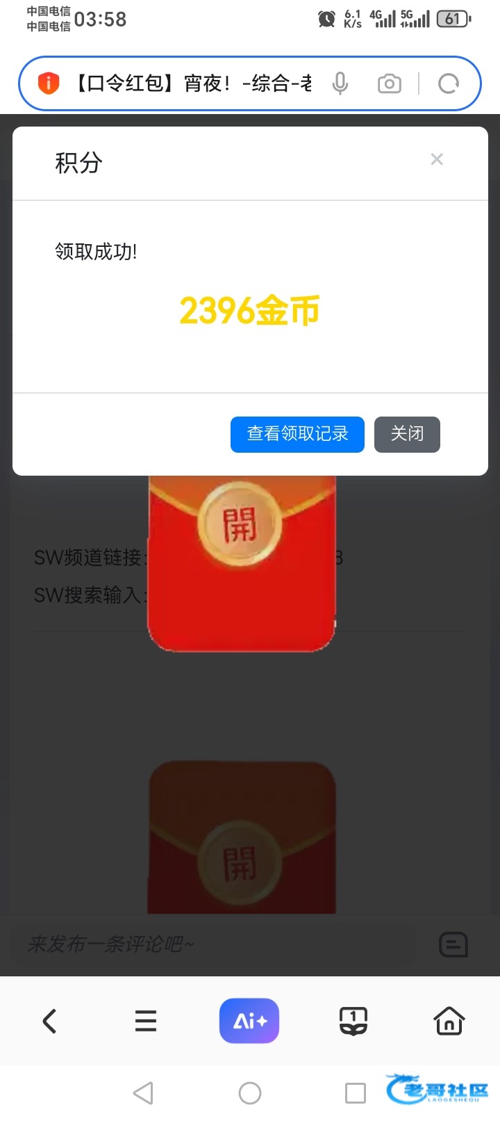抢红包需要输入5个数字的口令,统一放在频道里面,大家进群拿即可 30包 6.6万金币 论坛二级以上可抢,领到的记得反馈,祝各位盈利多多~