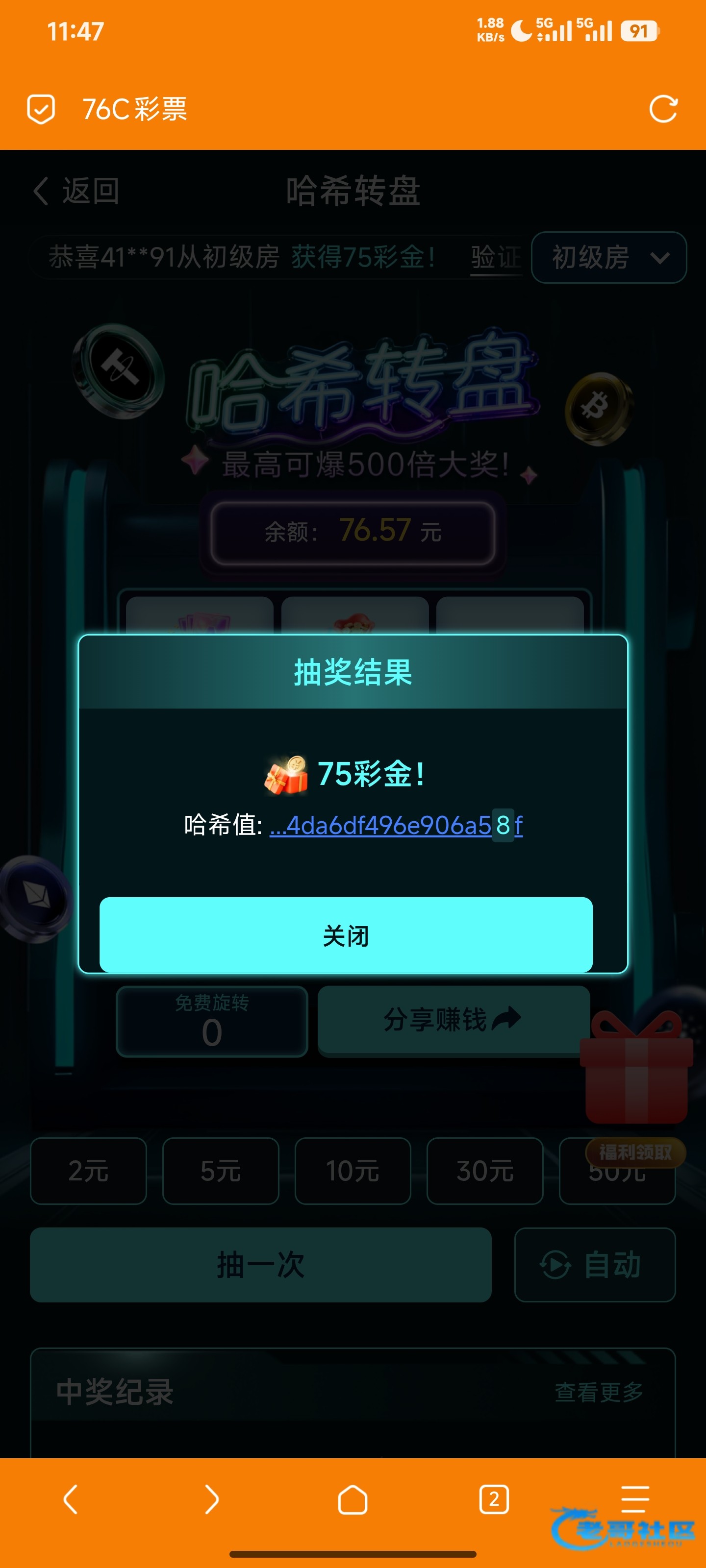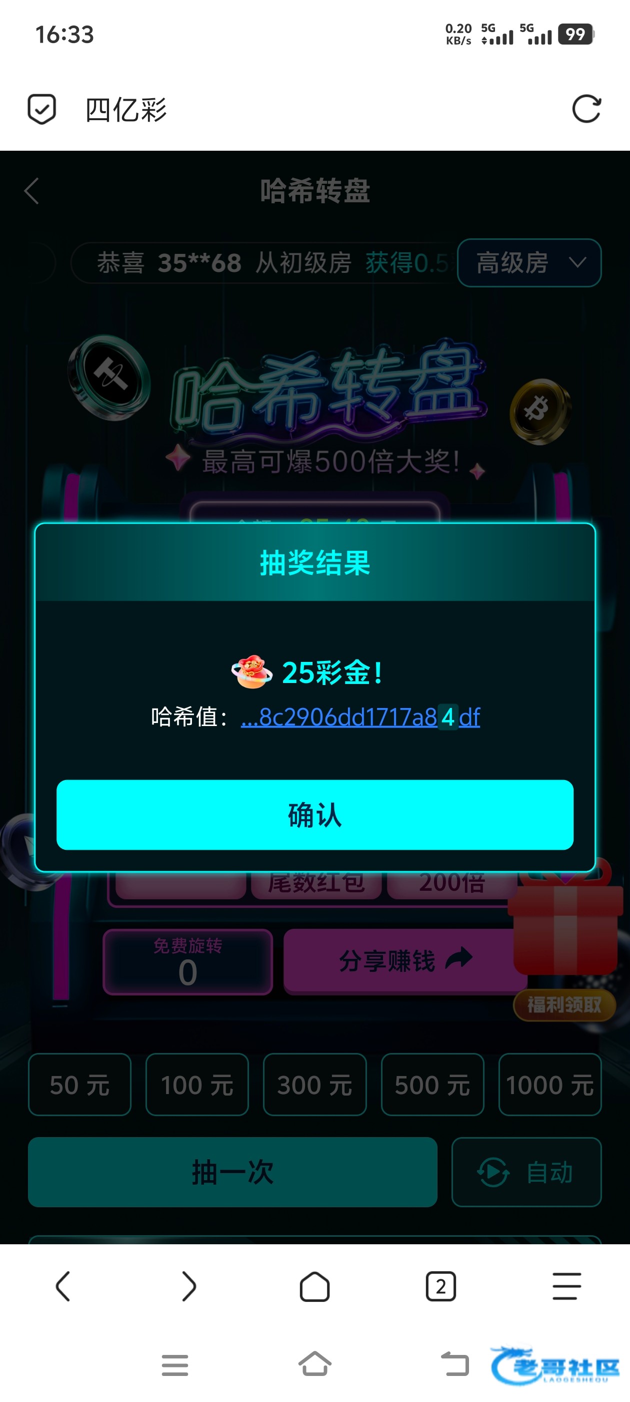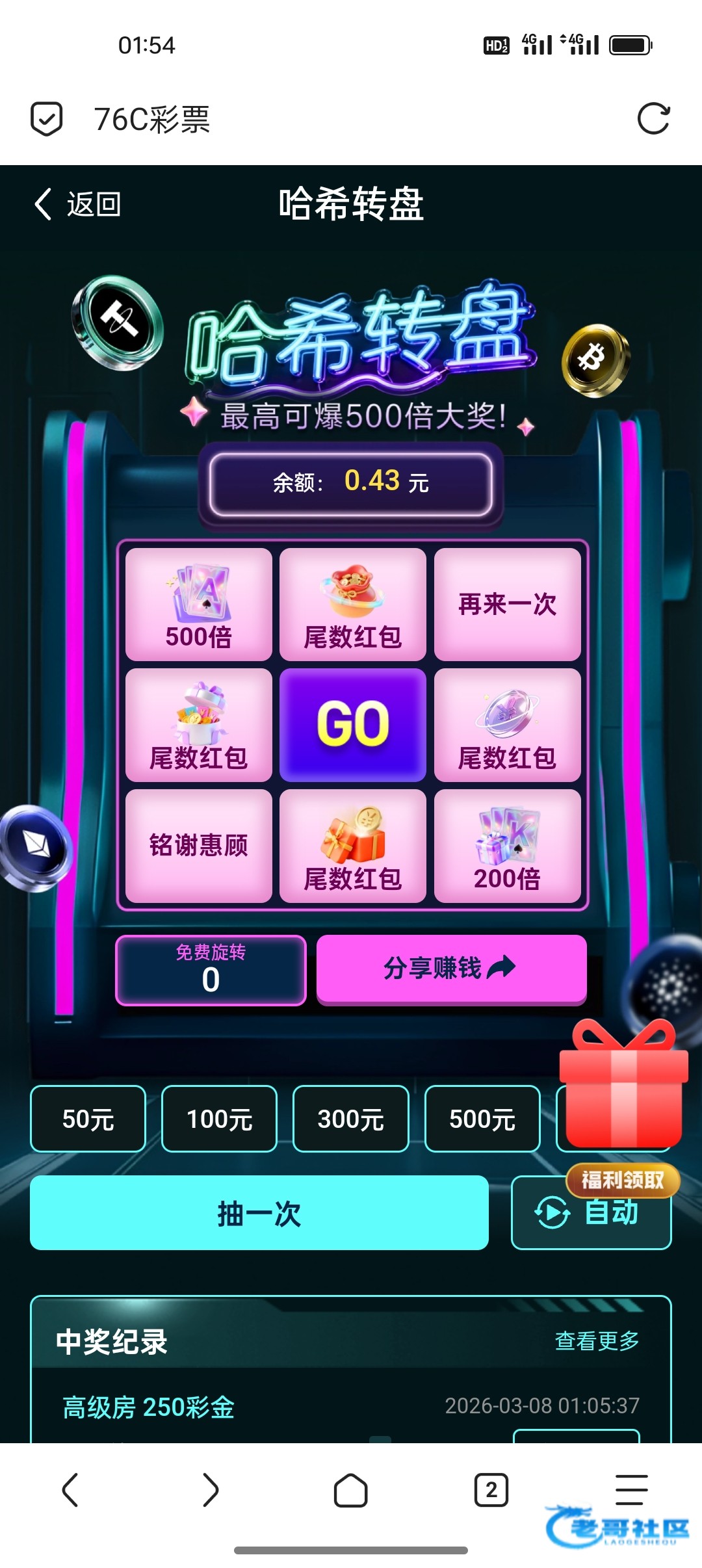 暮色里 ▶ 火速支持老哥网 这转盘也是看运气的,除非点背抽到谢谢惠顾 19天前