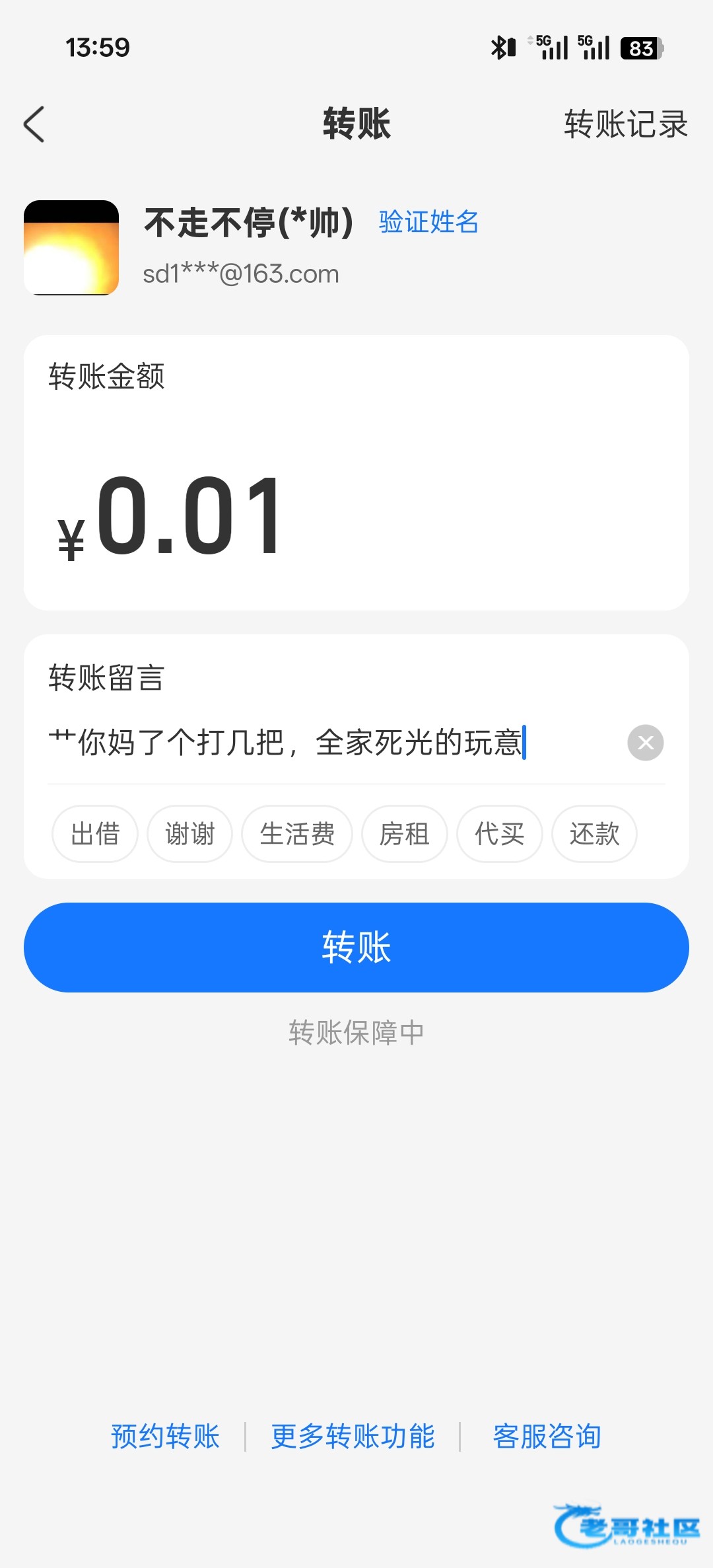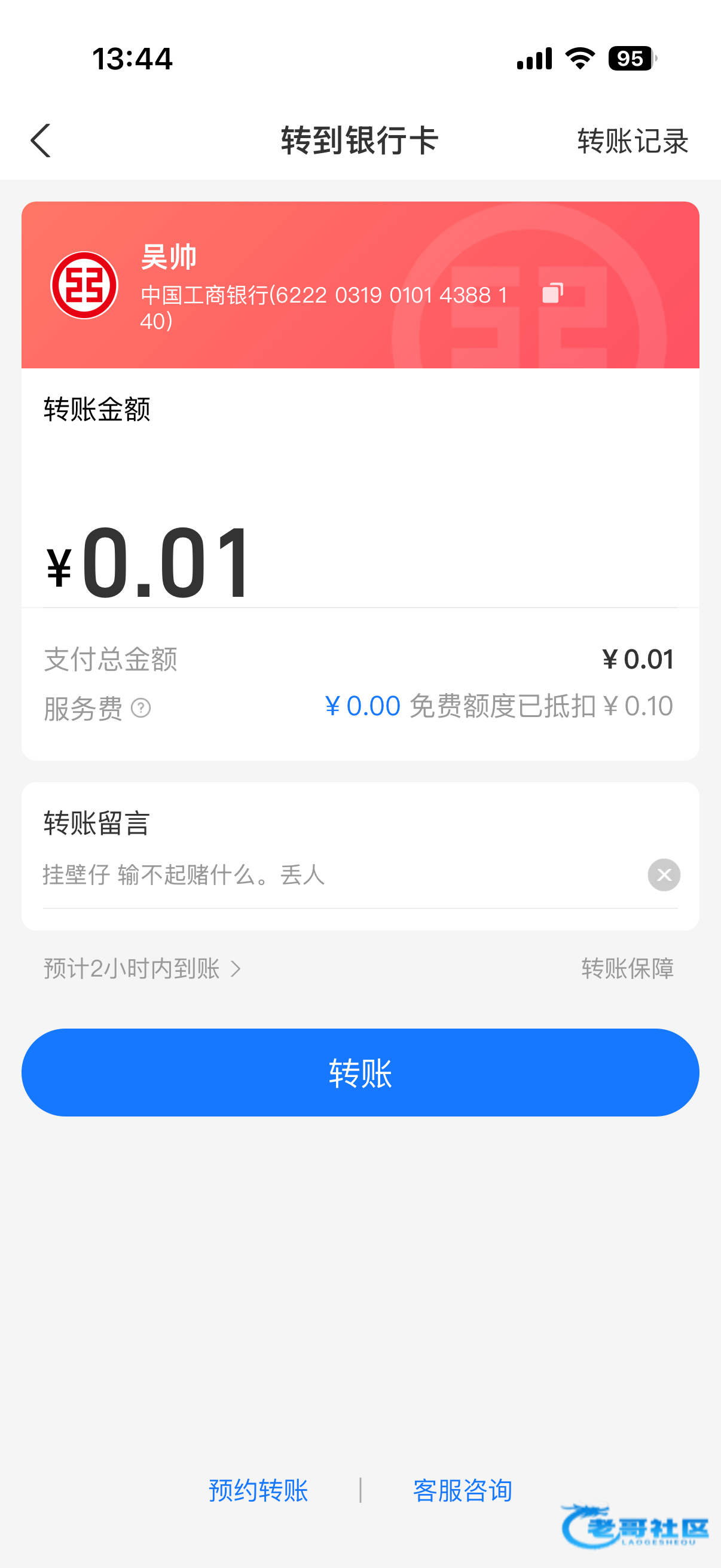 老哥们都往他卡里打0.01