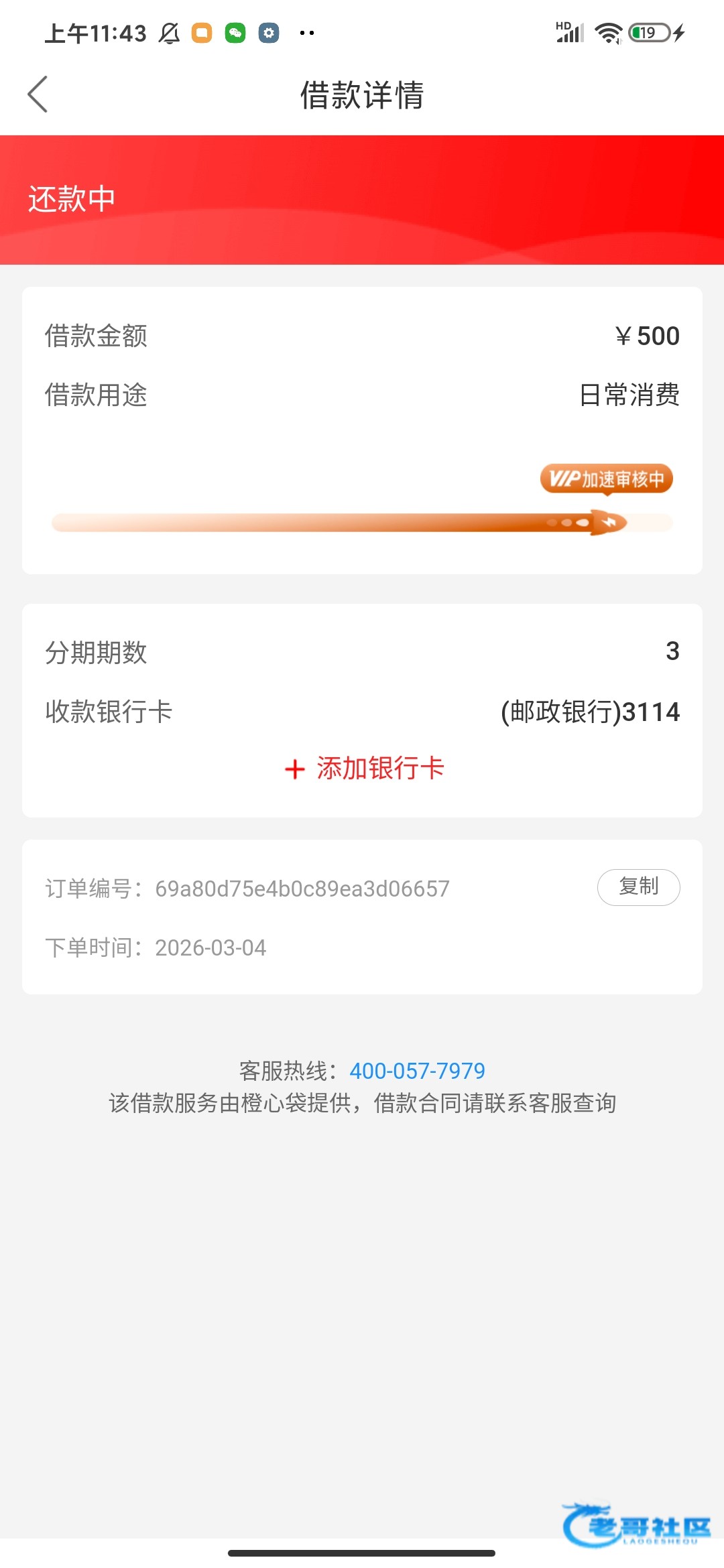 橙心袋二次借出来了,今天是还款日,早上8:11分放的款,还扣了我56会员费,这就有点恶心了,我上次扣了一次没退回来,这次又被扣了
