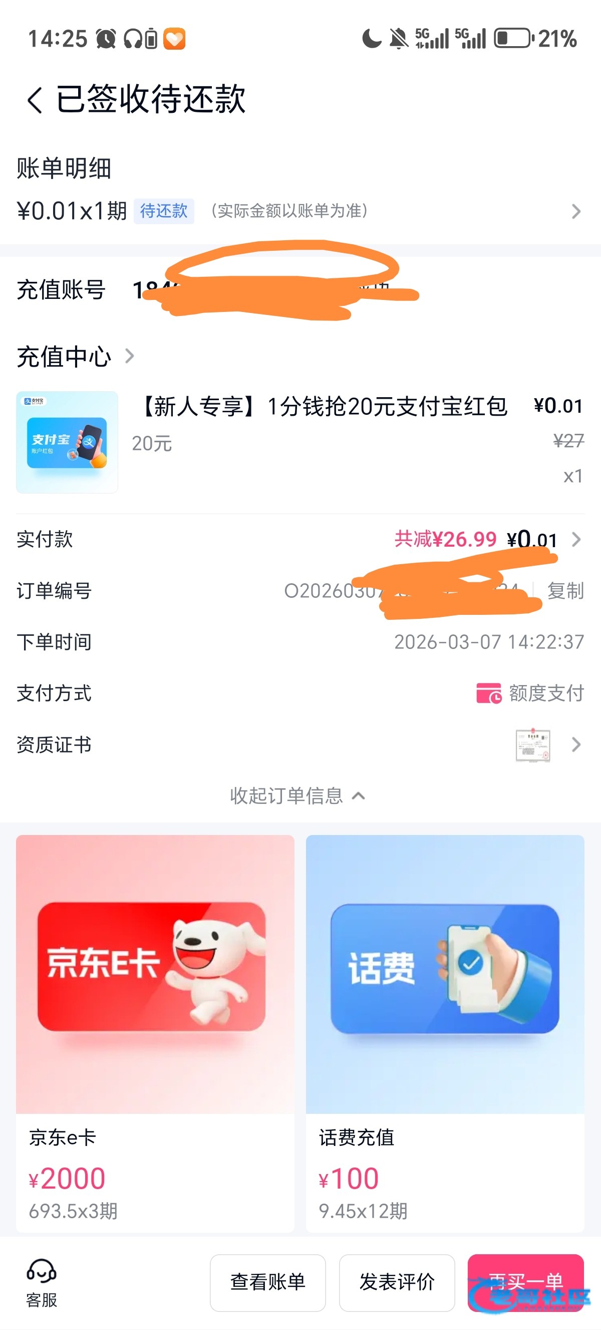 恭喜 征信一笔0.01的贷款