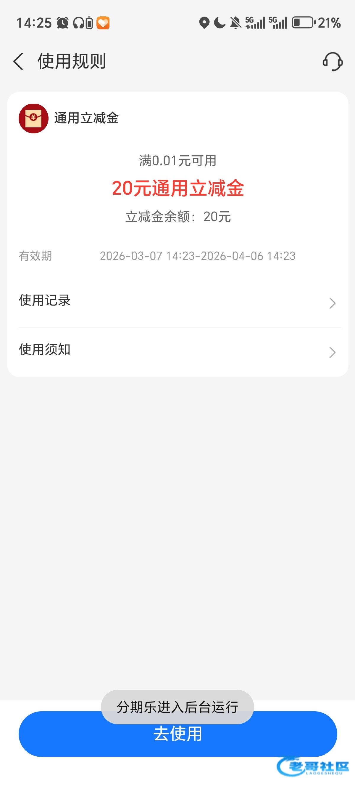 分期乐0.01领20立减金