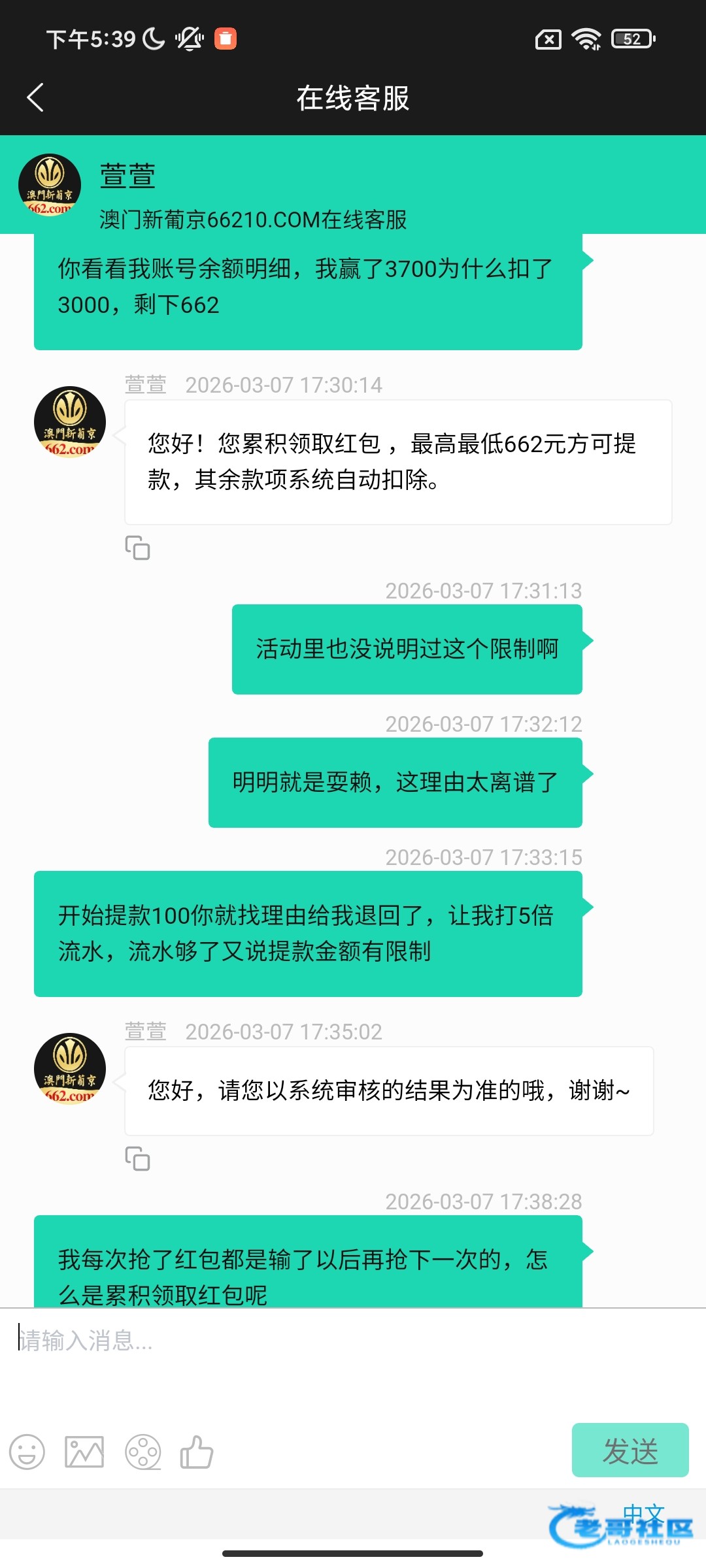 不知道老哥们遇到过没,抢了2元红包,提款100被退了回来,让我打5倍流水。直接打到3700,提款又被退了回来,扣了3000,让提662