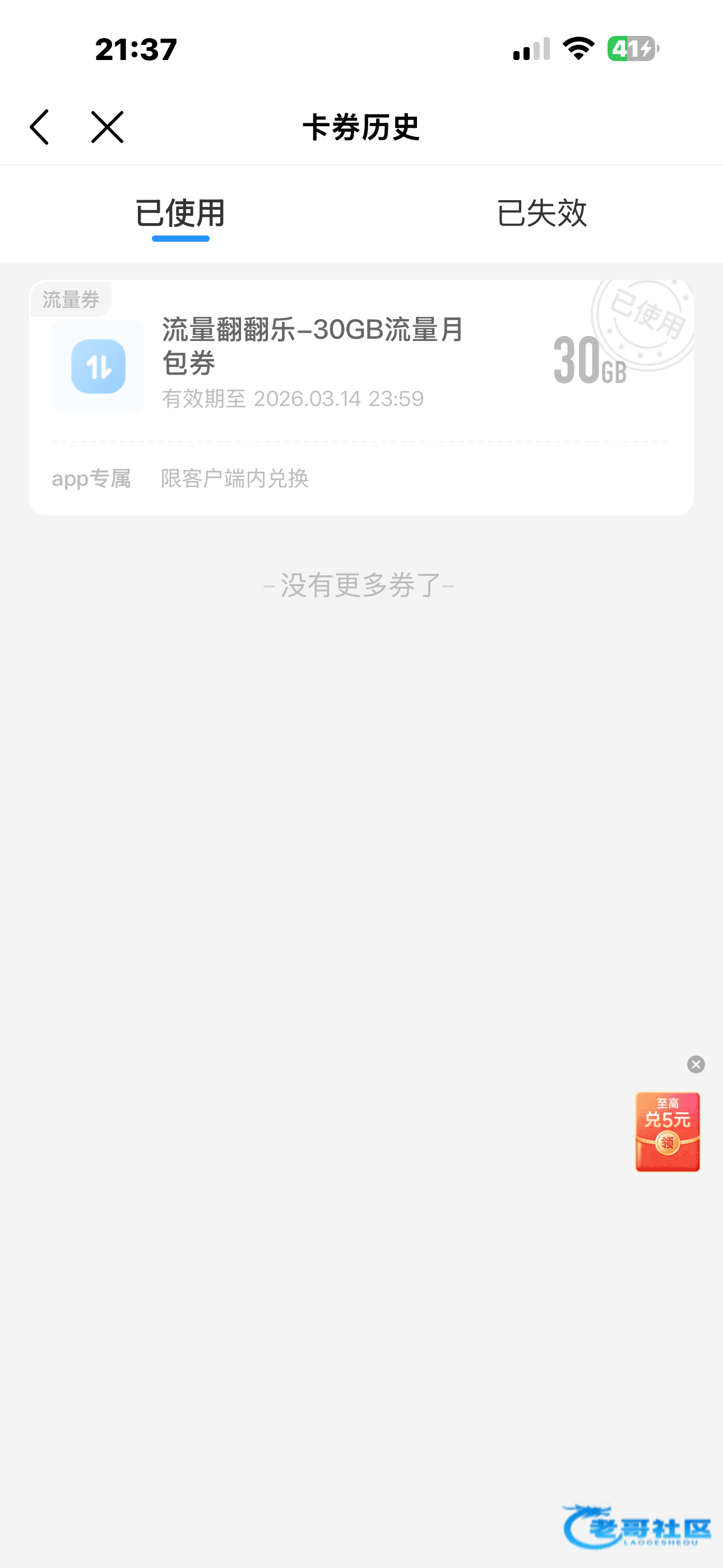 我今天抽了30g流量兑换了