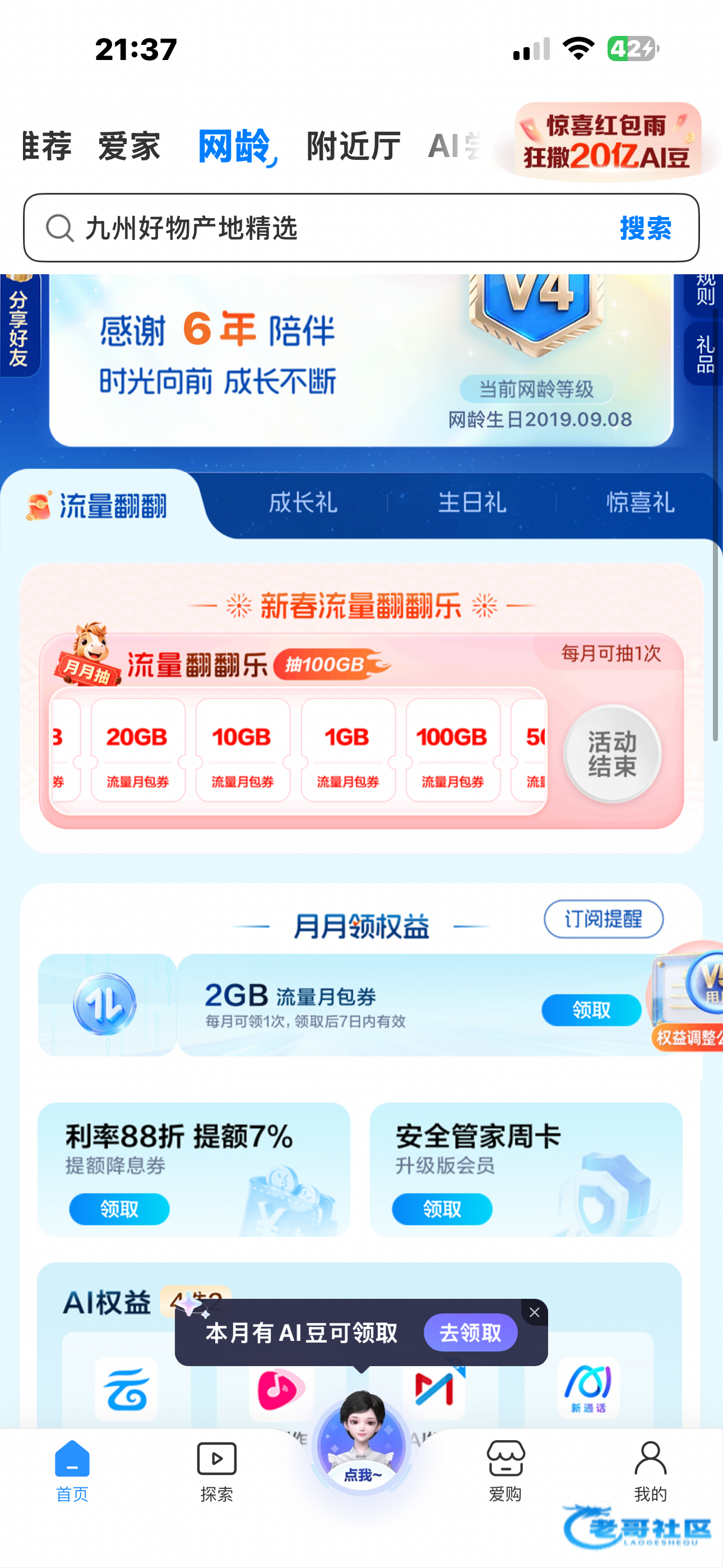 中国移动app点击网龄每个月抽一次