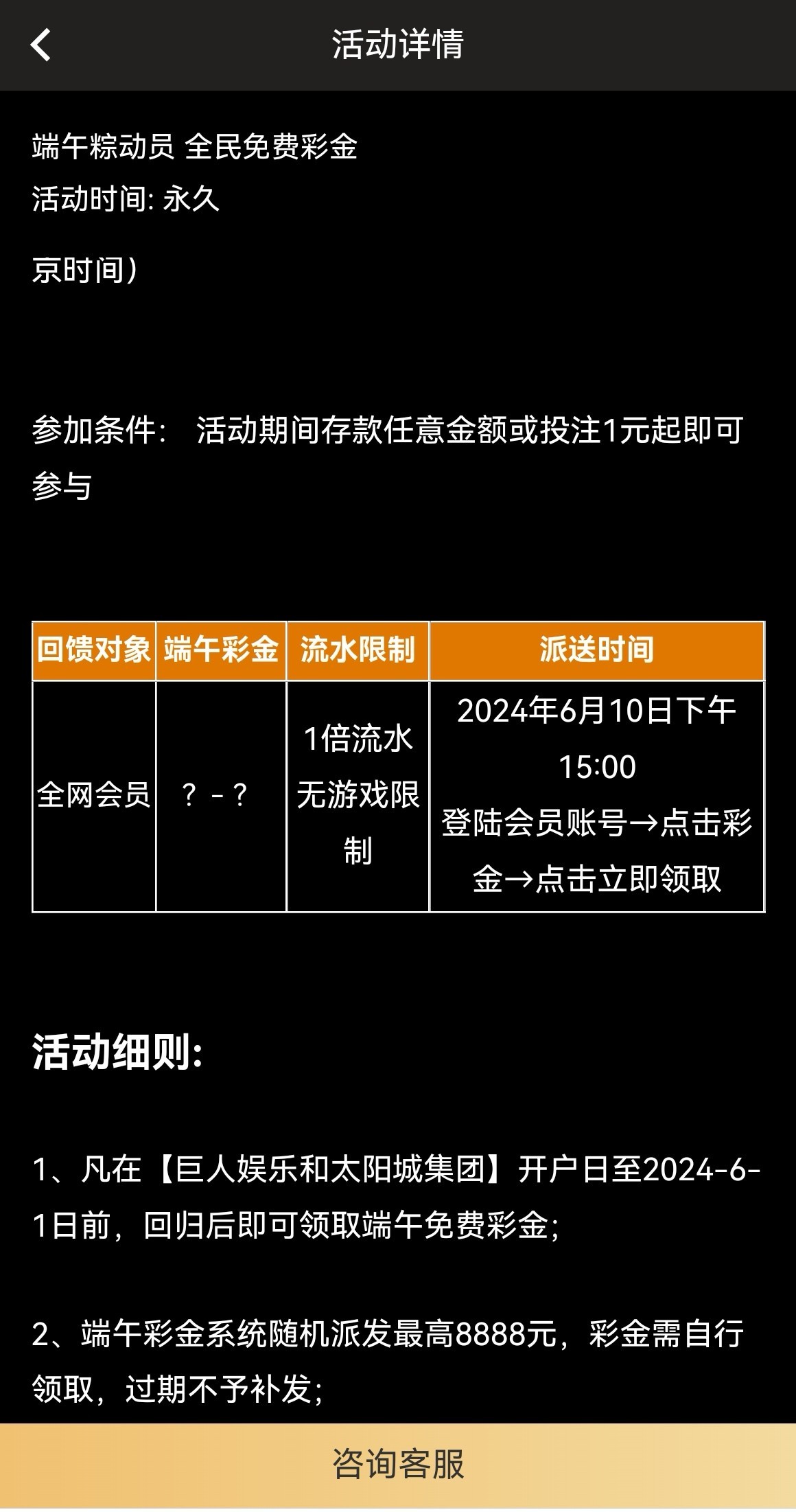 端午节彩金 6.1之前有注册过的,端午节就有彩金 应该不少 因为每次我都弄38或者58