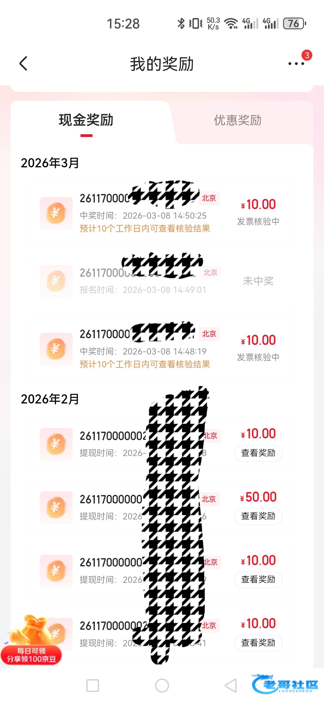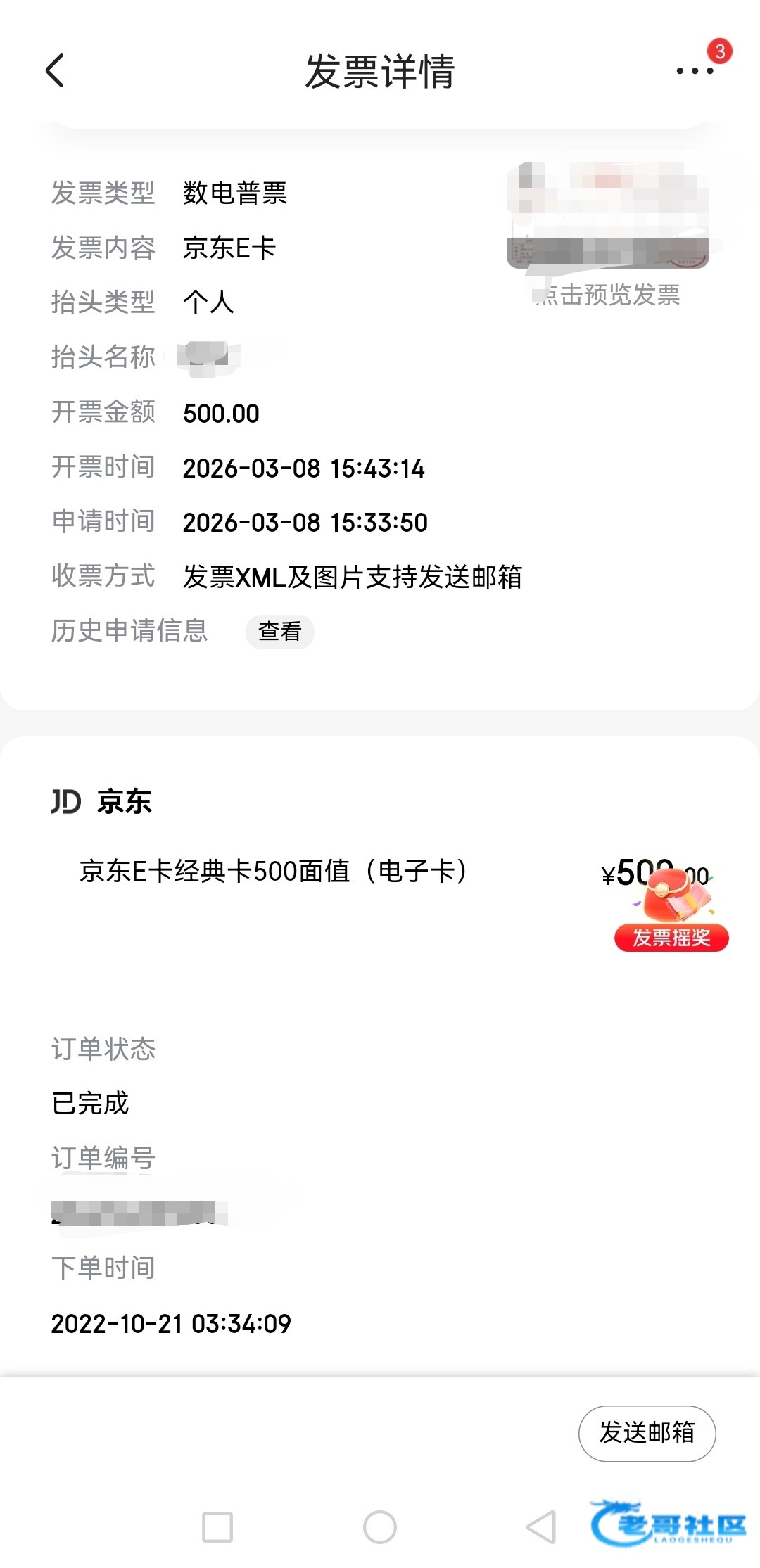 上个月看老哥们撸发票,有的老哥之前买了E卡,但是没有换开按钮,没有换开按钮的直接一次性复制要换开订单编号给客服,叫客服换开,不止E卡北京发票,你看看你以前在京东上买的东西,卖家的市区支不支持发票有奖,只要100以上也可以找客服换开,我自己的换开的最多只能换开到2020年的,再早换开不出来了,新的一个月又开始了,一天三次,中奖五次,祝老哥们好孕!