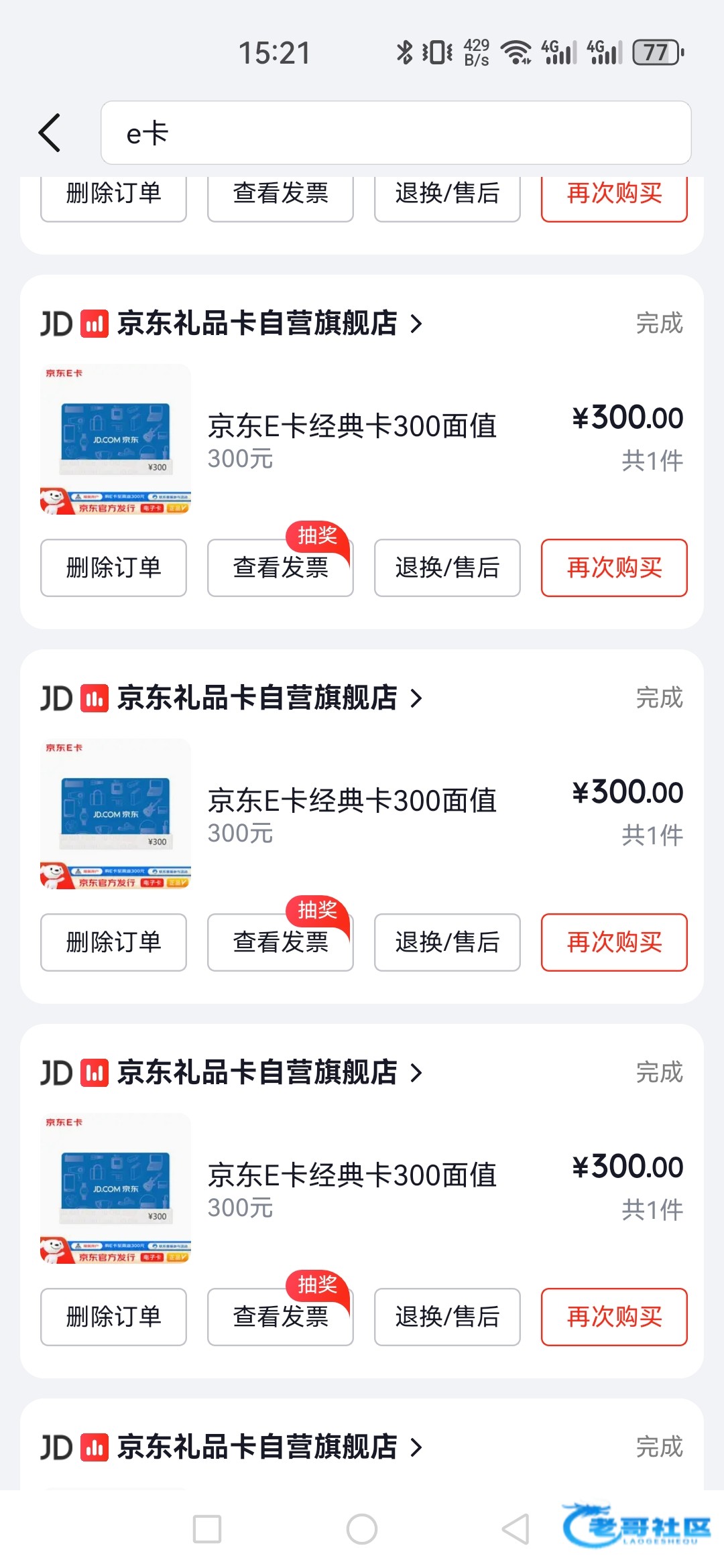 我以前天天买,最大2000卡密,不过被我去年12月份注销了京东我怕被反诈看出来我买了e卡当时叫我过去检查手机的时候,就只有京东不能登录,金融可以,这种能不能找回以前交易订单