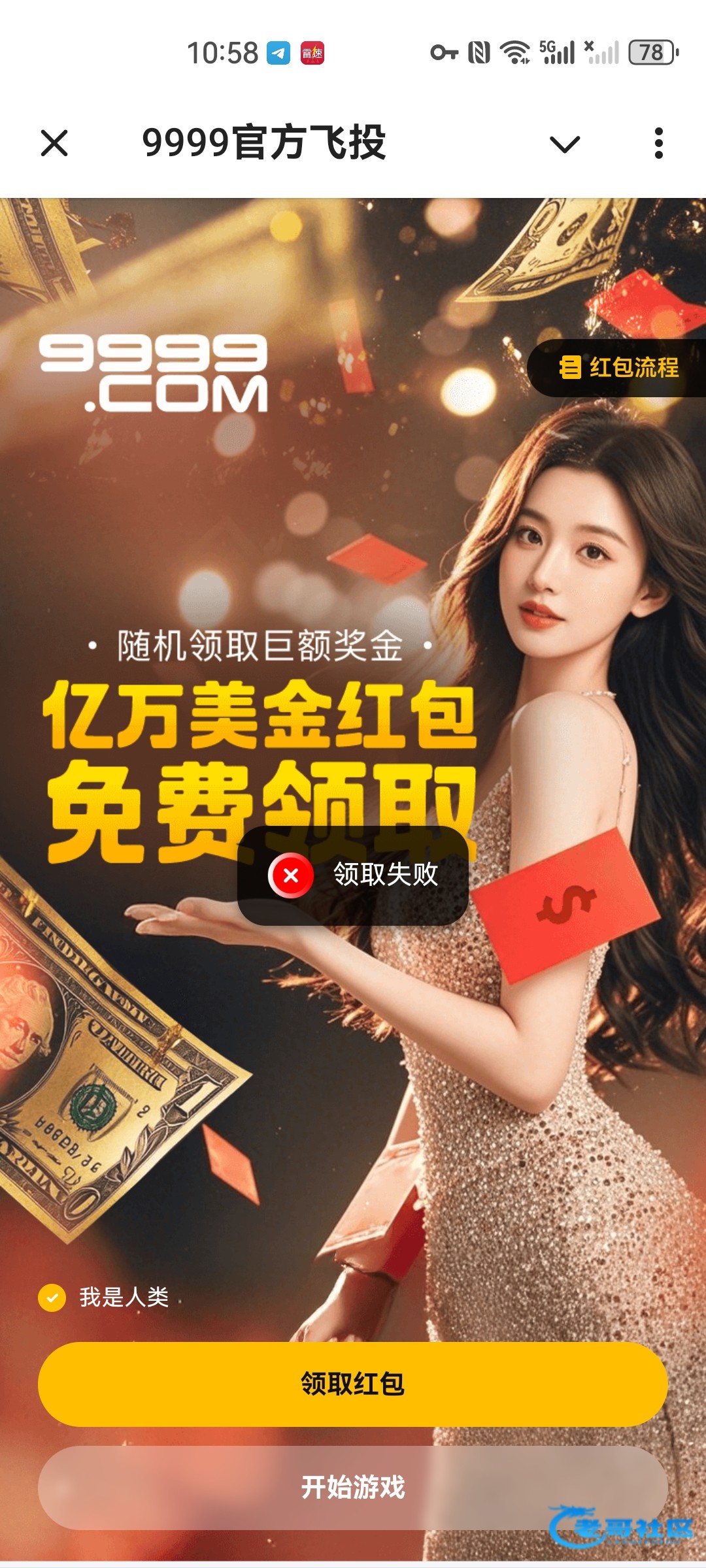链接是https://t.me/GFFT9999bot?startapp=Ym90aWQ9MyZyZWRiYWc9RDBSSUxOVjQmYWdlbnRDb2RlPWNyanlnYw 随便发一个人 点进去 然后领取 就行了