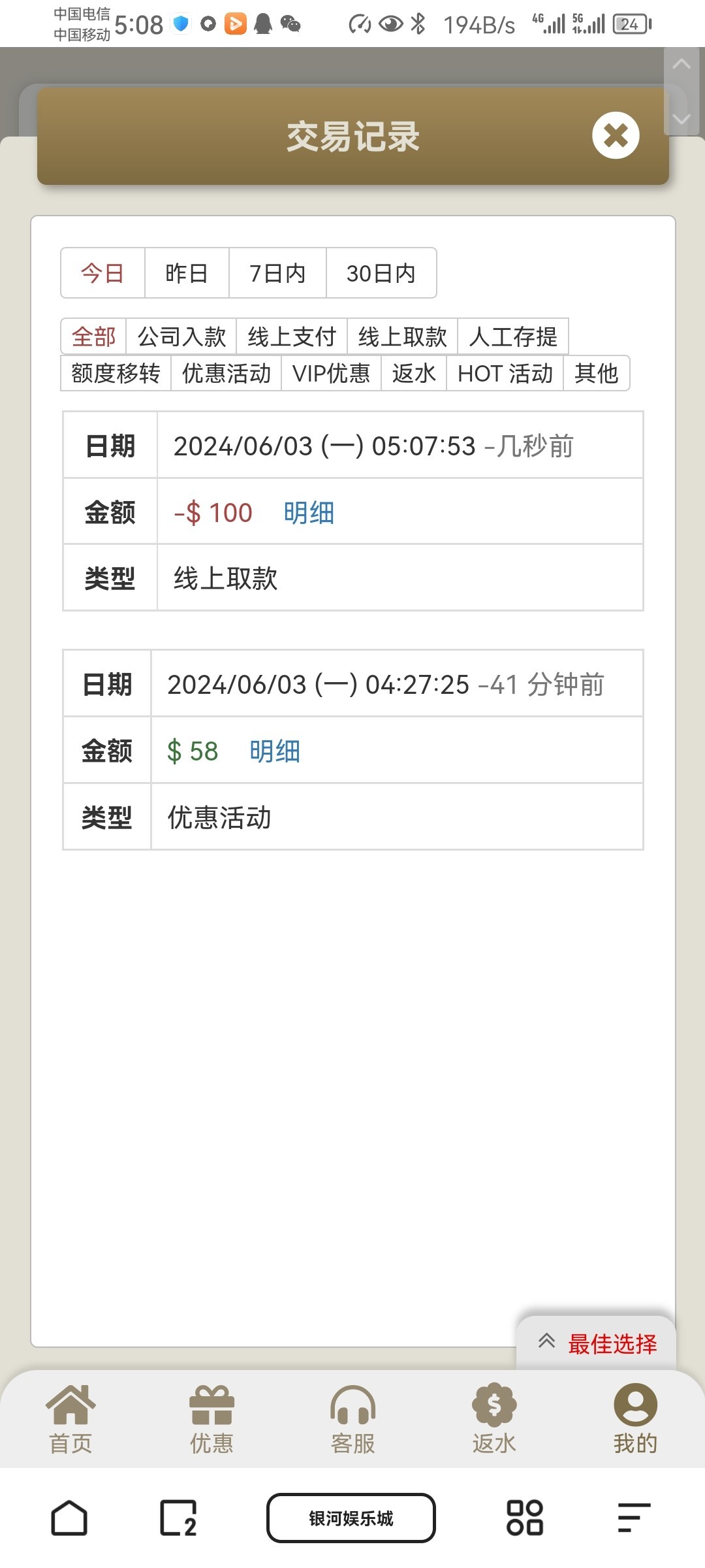 这垃圾台子你经常玩经常充值毛都没有,那些就充值过一次的一个月玩不到两次的,有没有接到电话每个月去领回访彩金百分百有。