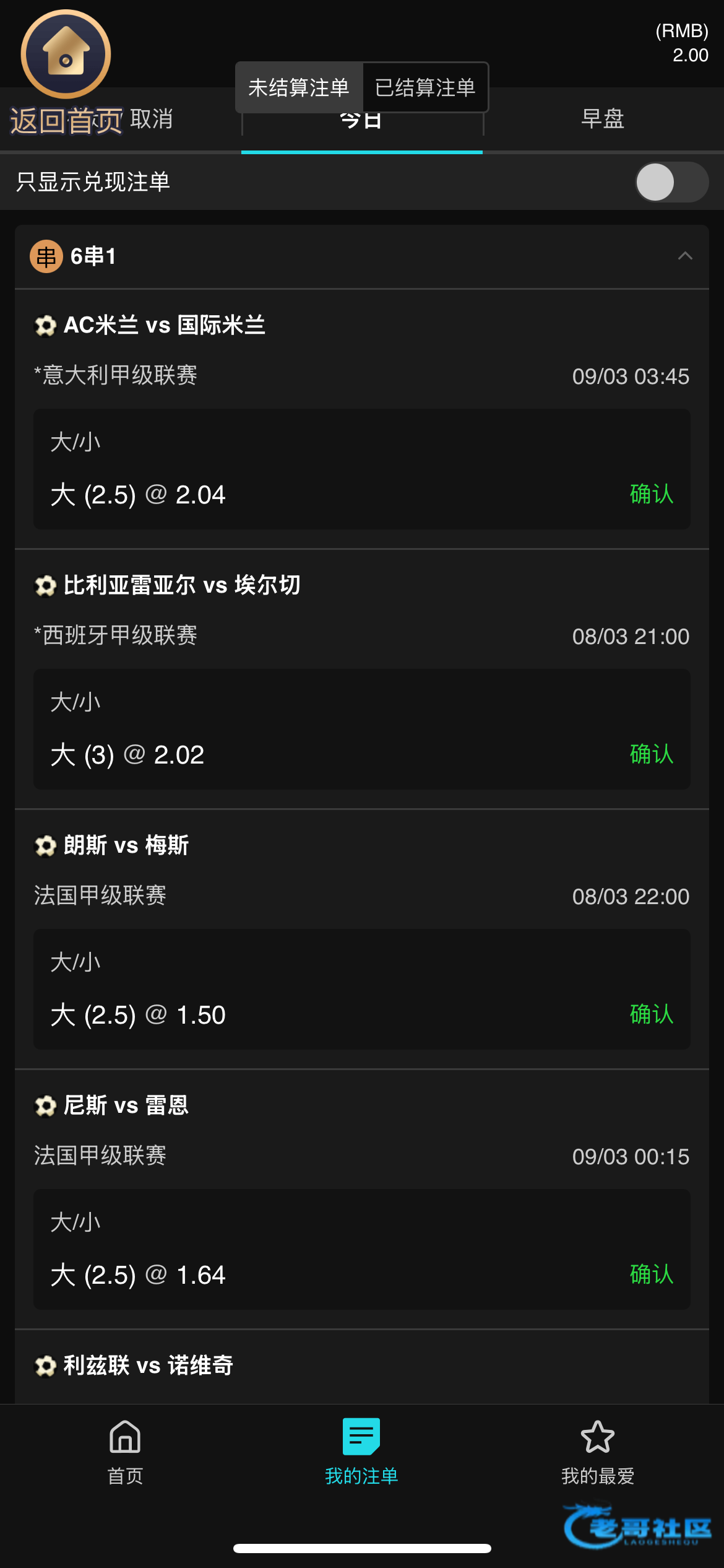 搞了个6串1摁了几十块,都摁的大球,雷恩那场大3走水了,其他都是大2.5,AC米兰机构都是给的小球,但感觉应该有3个球