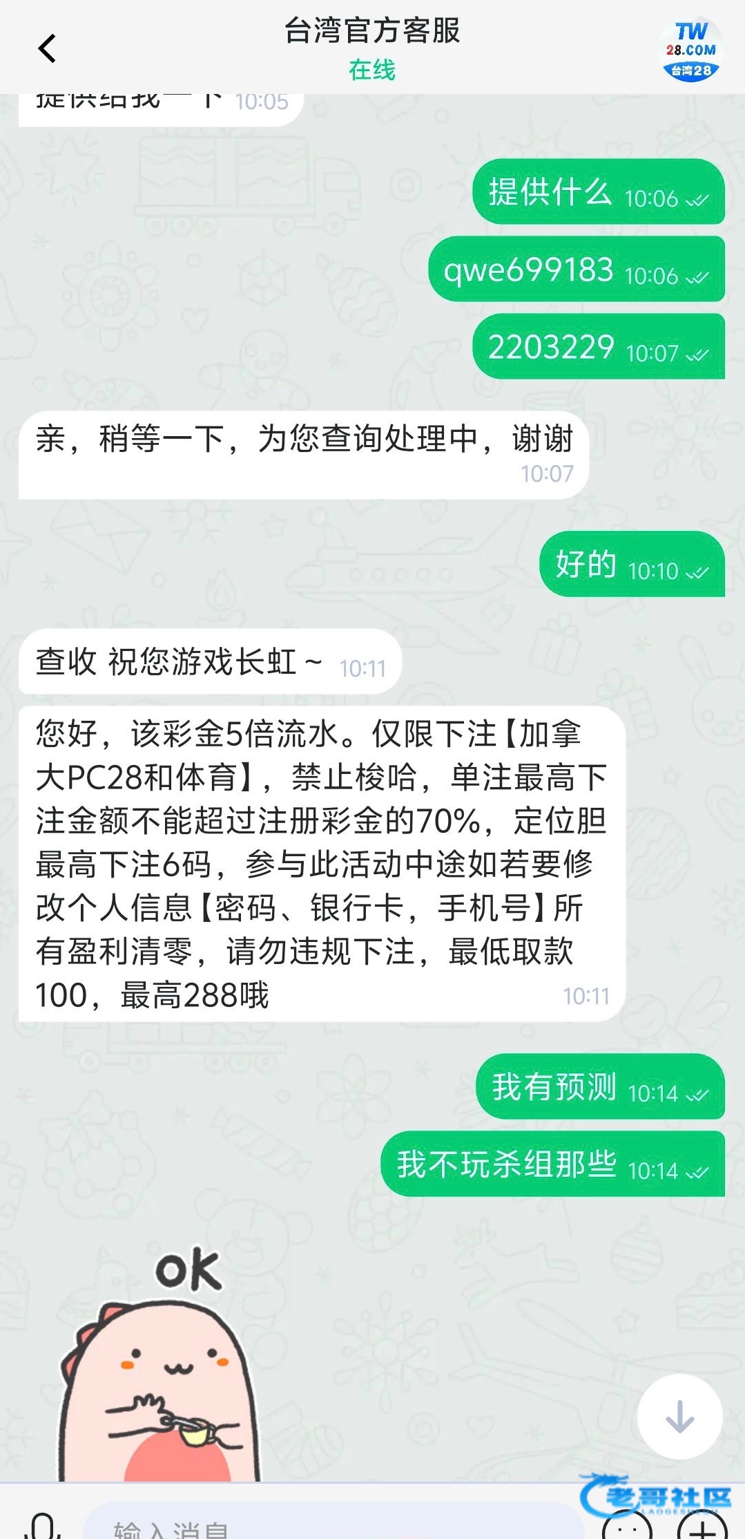 新晋会员首存100送100200送200本金+彩金7倍流水500送1081000送1883000送28810000送52830000送128850000送1888100000送2888本金+彩金3倍流水注:玩家在注册后第一笔存款金额可获得对应彩金首存,复存,累存有礼需玩家在符合条件后当天联系客服申请逾期视作放弃。须在未下注之前申请!!!2.参与首存,二存,三存活动时,下注三组合,杀组合玩法,打码减半(即下注1000,计算500打码),禁止梭哈!下注10期以上,无需争议!