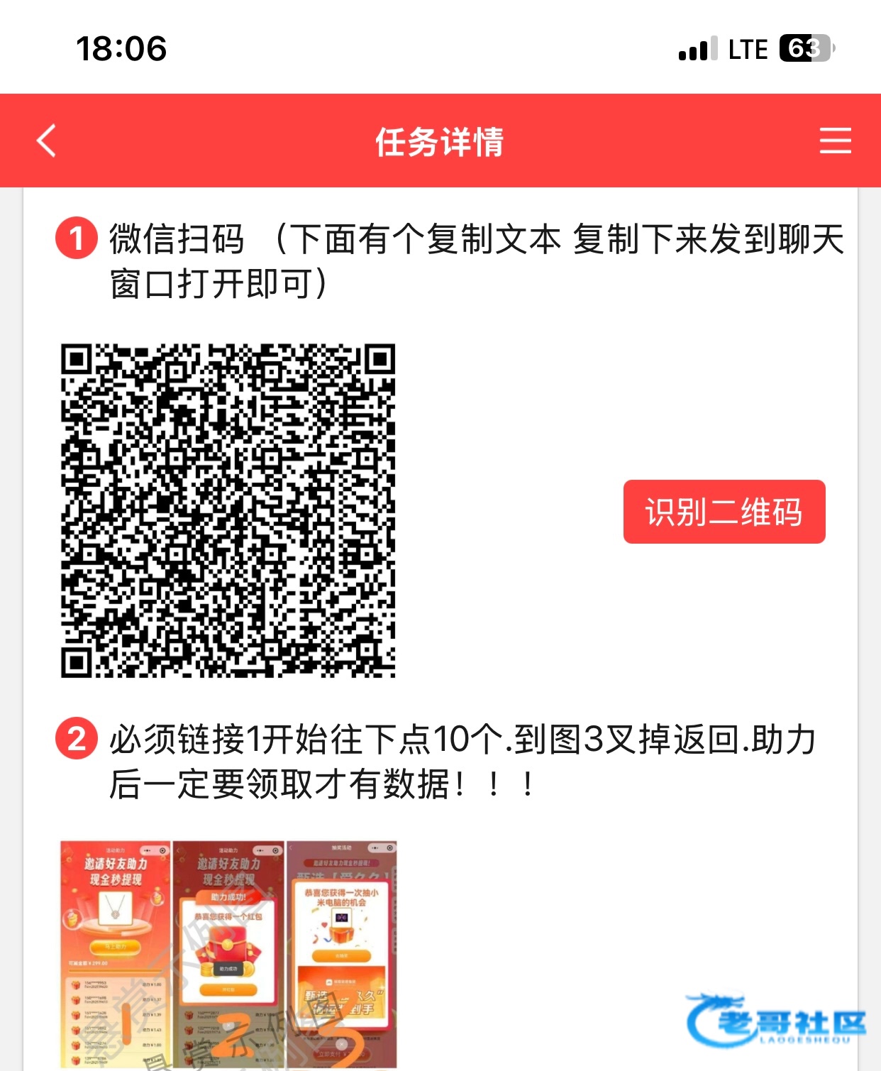 扫这个码(二维码悬赏任务平台的,无任何邀请引流行为),扫码后底下复制一下文本,发到聊天窗口,一共10个,每个都助力一下,大概10一15块钱左右,任务平台是转账给他,但是我看到钱包点进去,有充值,提现按钮,100起提,6的手续费,除去手续费可以白嫖个牛子,具体看图吧,我没一百块钱我就没整,有钱的可以去看看,安卓应用商店是商小萌,苹果是商小萌购物