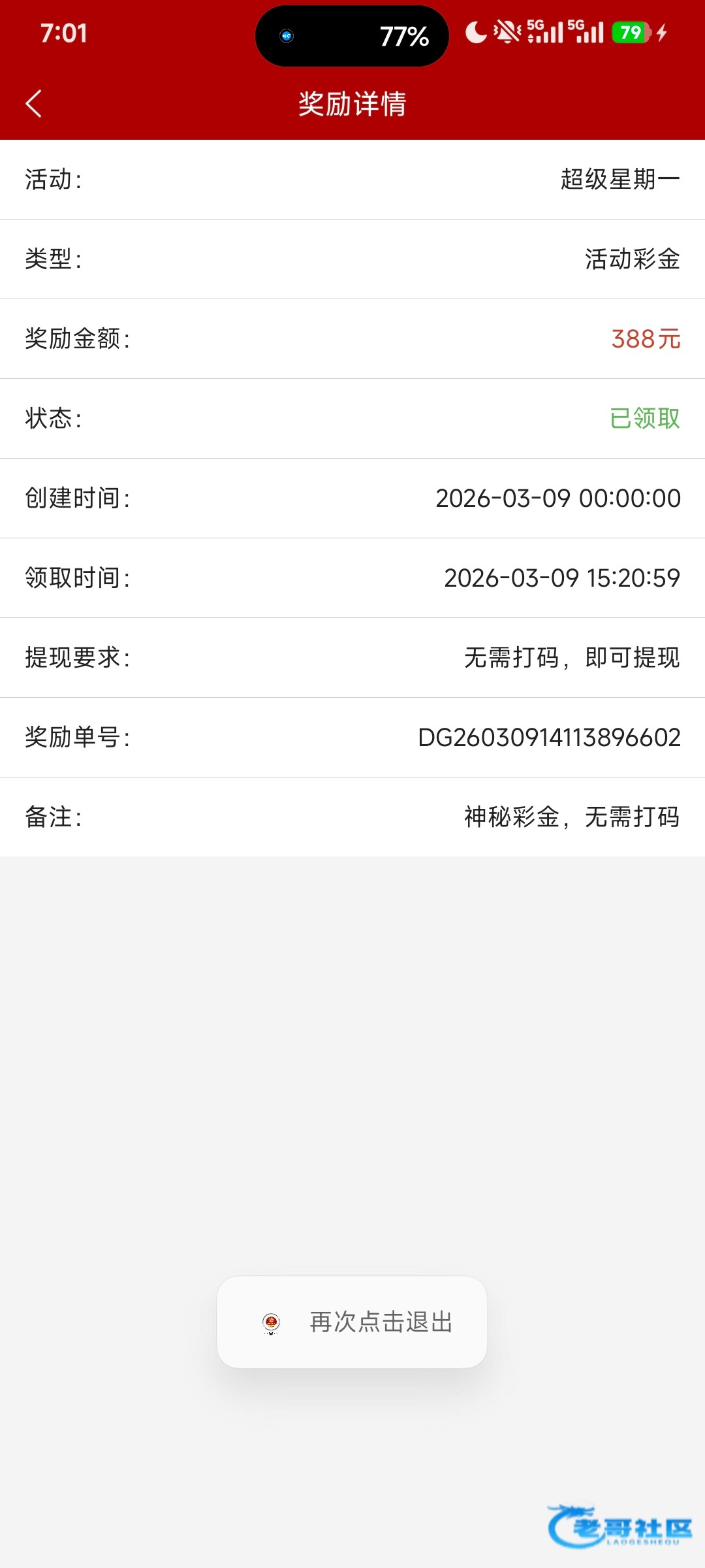 773每周一登陆彩金随机送的