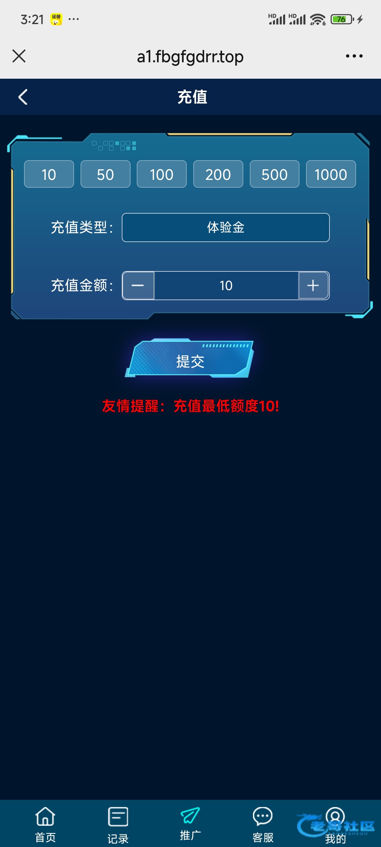 没有体验金充值入口