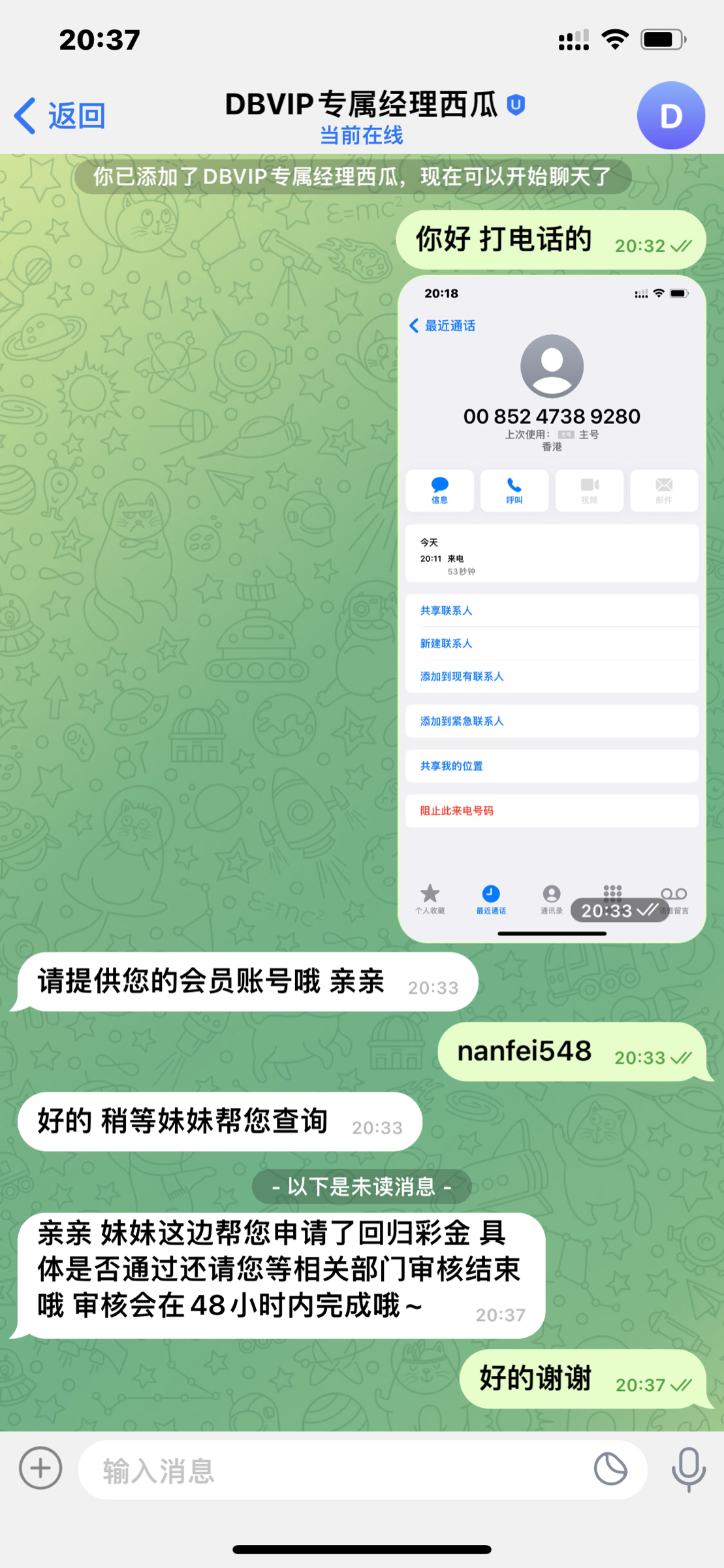 有号的去找客服碰瓷,我注册了15天接到回访电话送彩金 ,出款自测。duobao.com