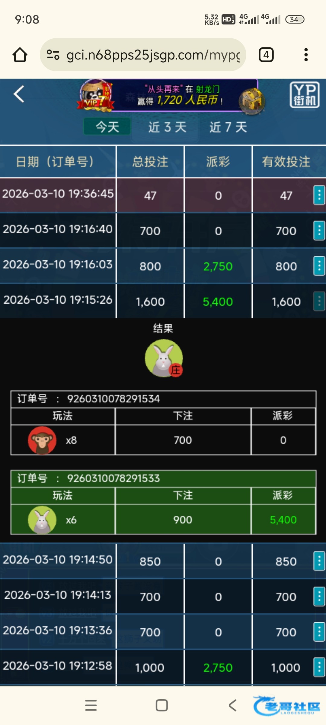 应该下注的选项过多,有些台子就不给这么玩。之前玩宏币台不能同时下大小龙门,水果不能超5个