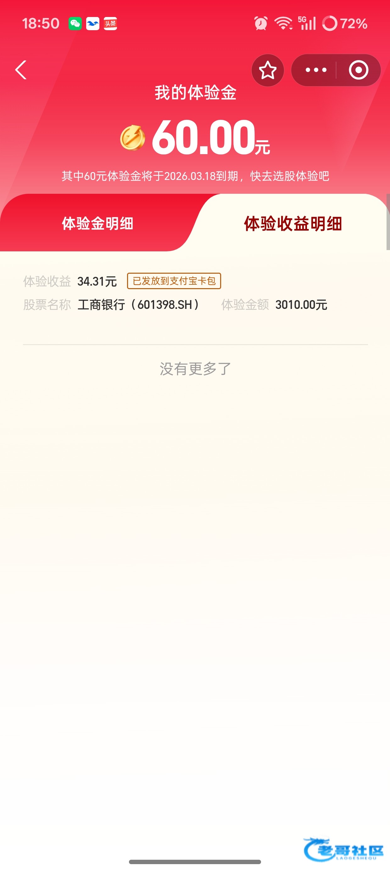 领取过50的后面还有个股票体验金红包任务