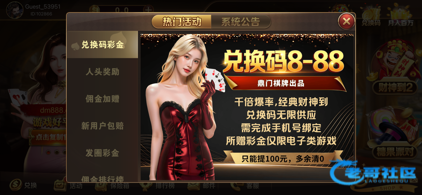 彩金代码在商场自助领,若没有看到那就是被抢完了,有200个别人给我的我骗他是代理就给我拿了200个彩金码你们可以去试一试 别充值千万别充值,领到的反馈一下
