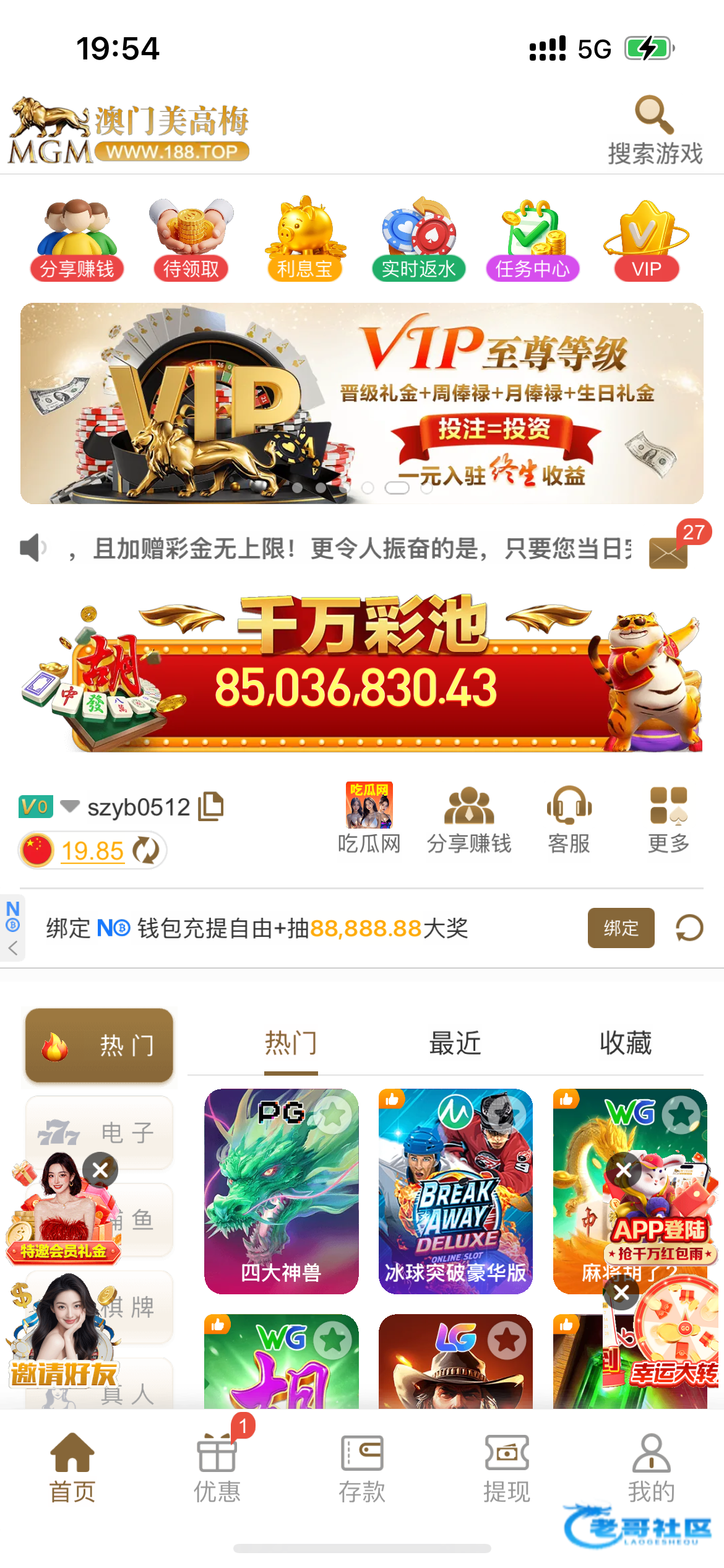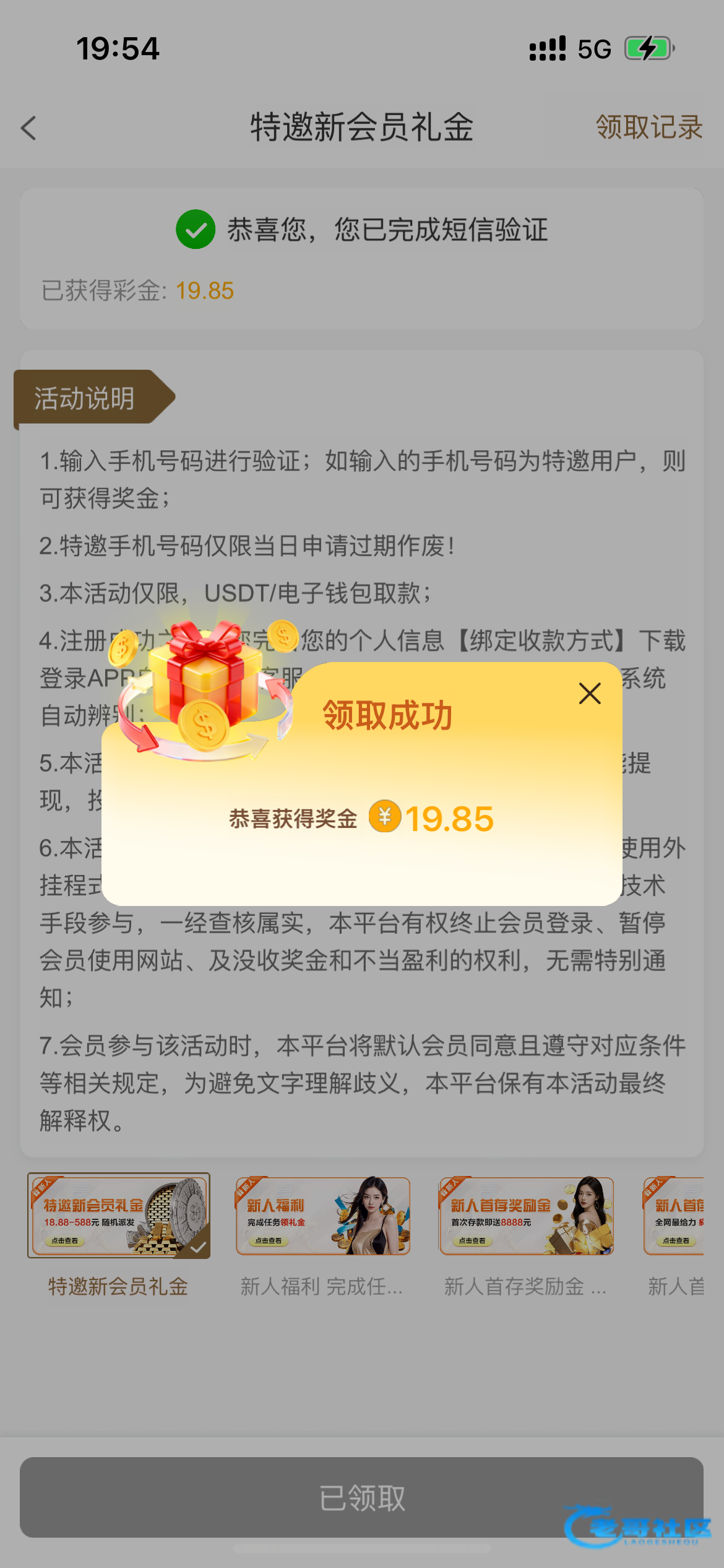 特邀网址:56789.net,老哥们可以去试试,我领到了