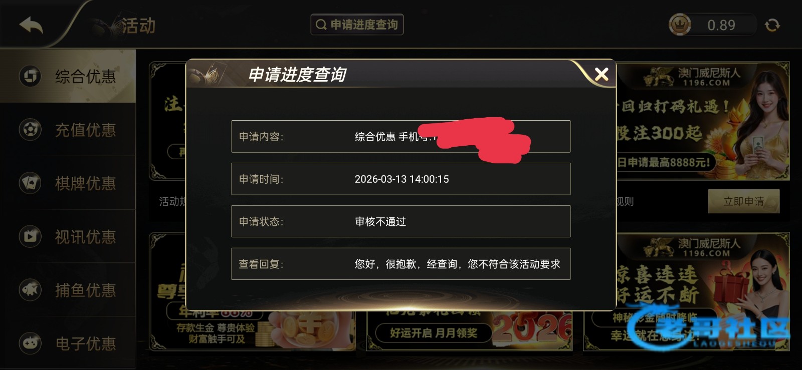 您的账户不符合活动申请标准