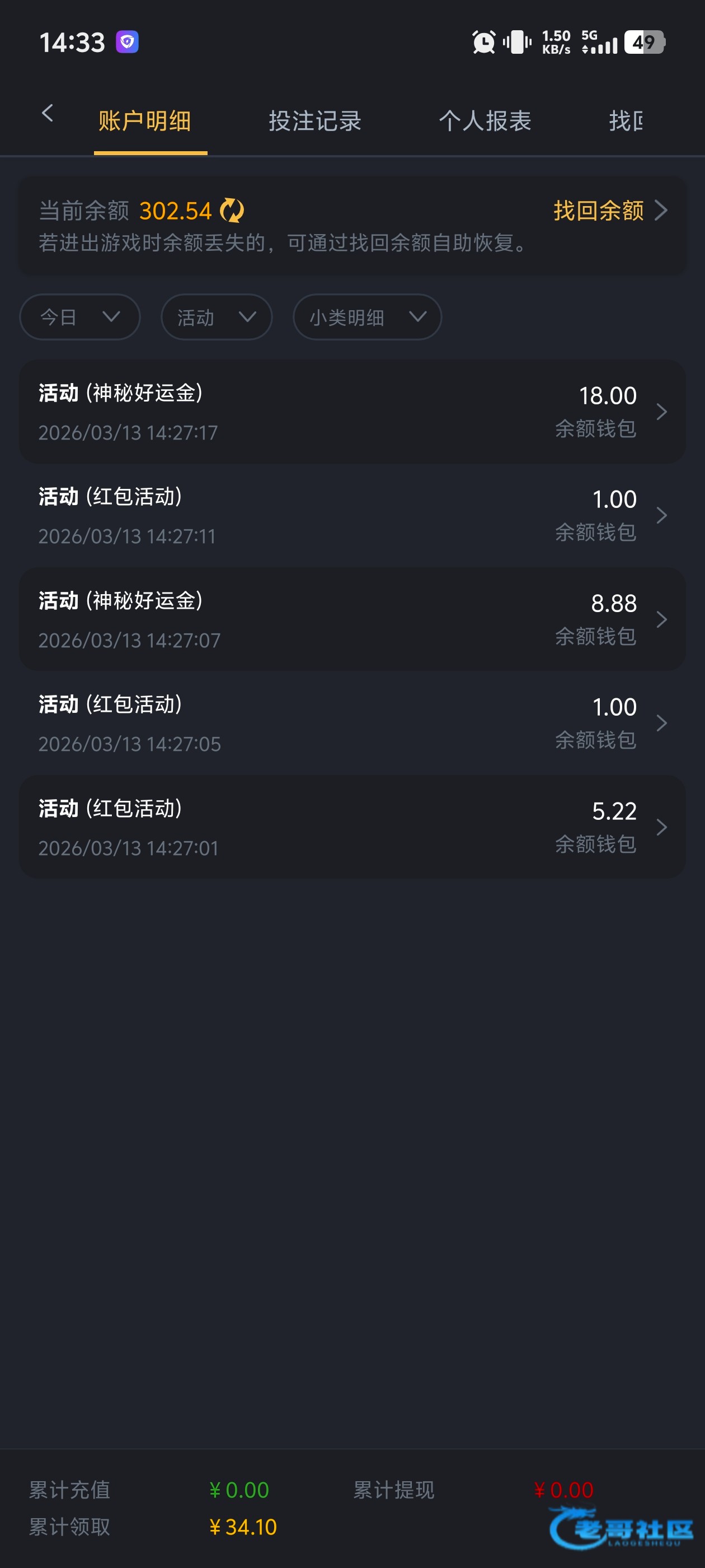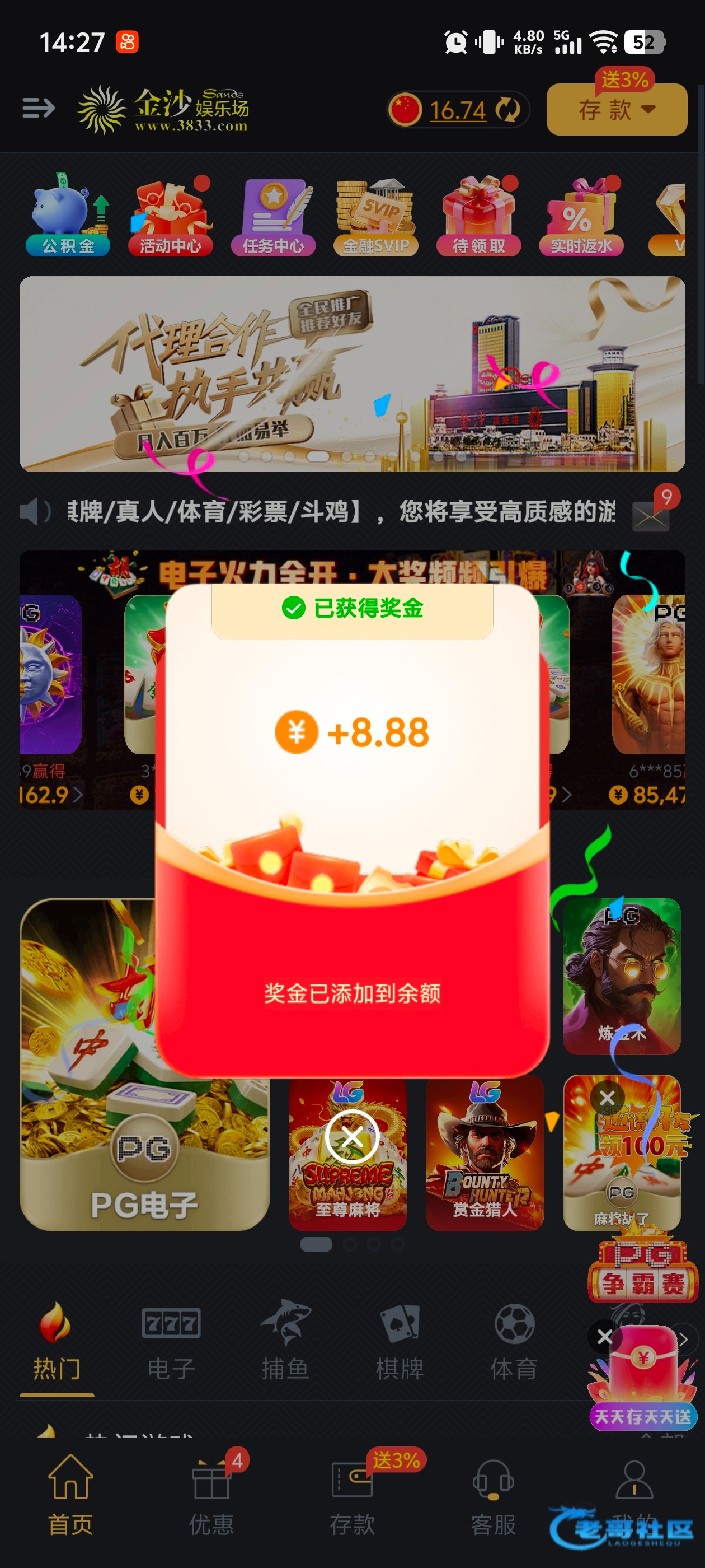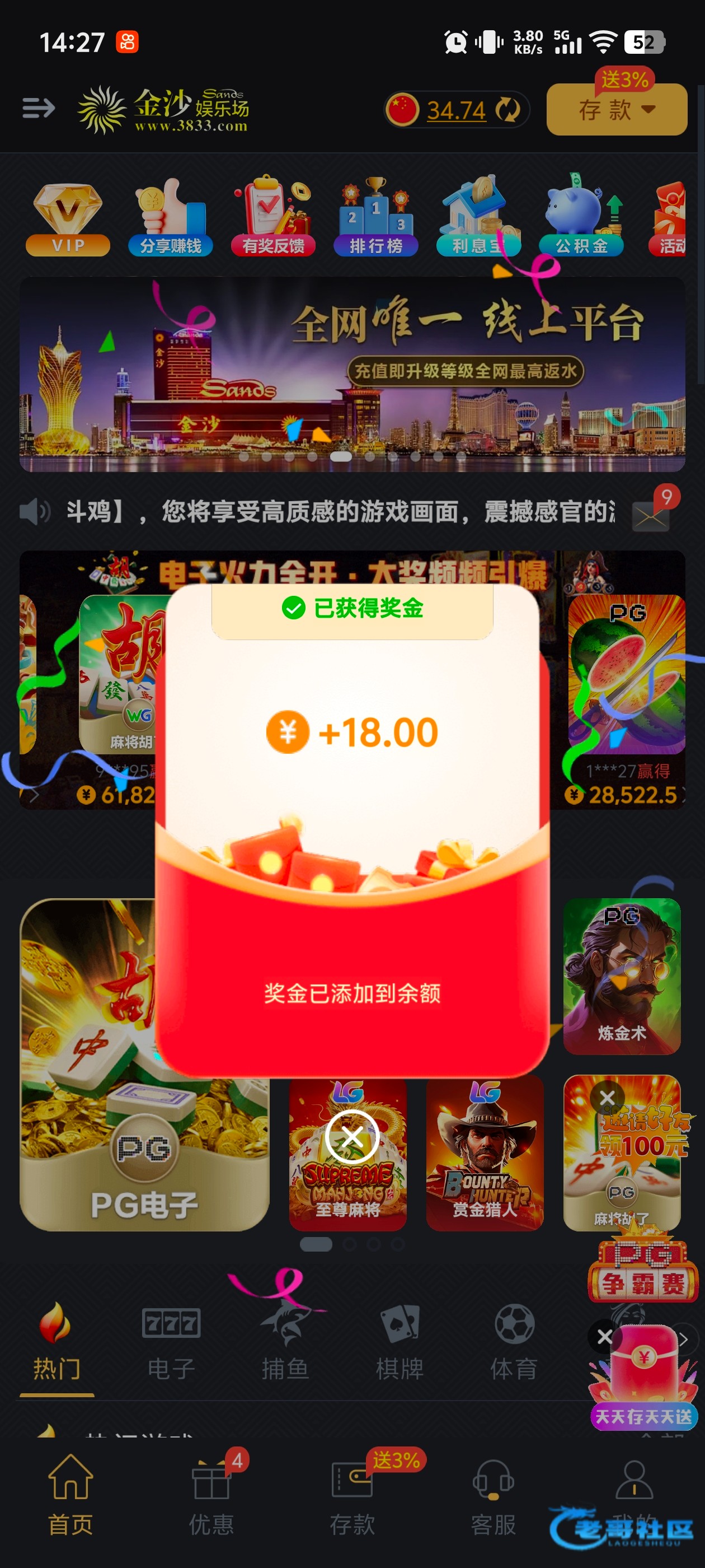每天都有神秘彩金,不过都要充值100