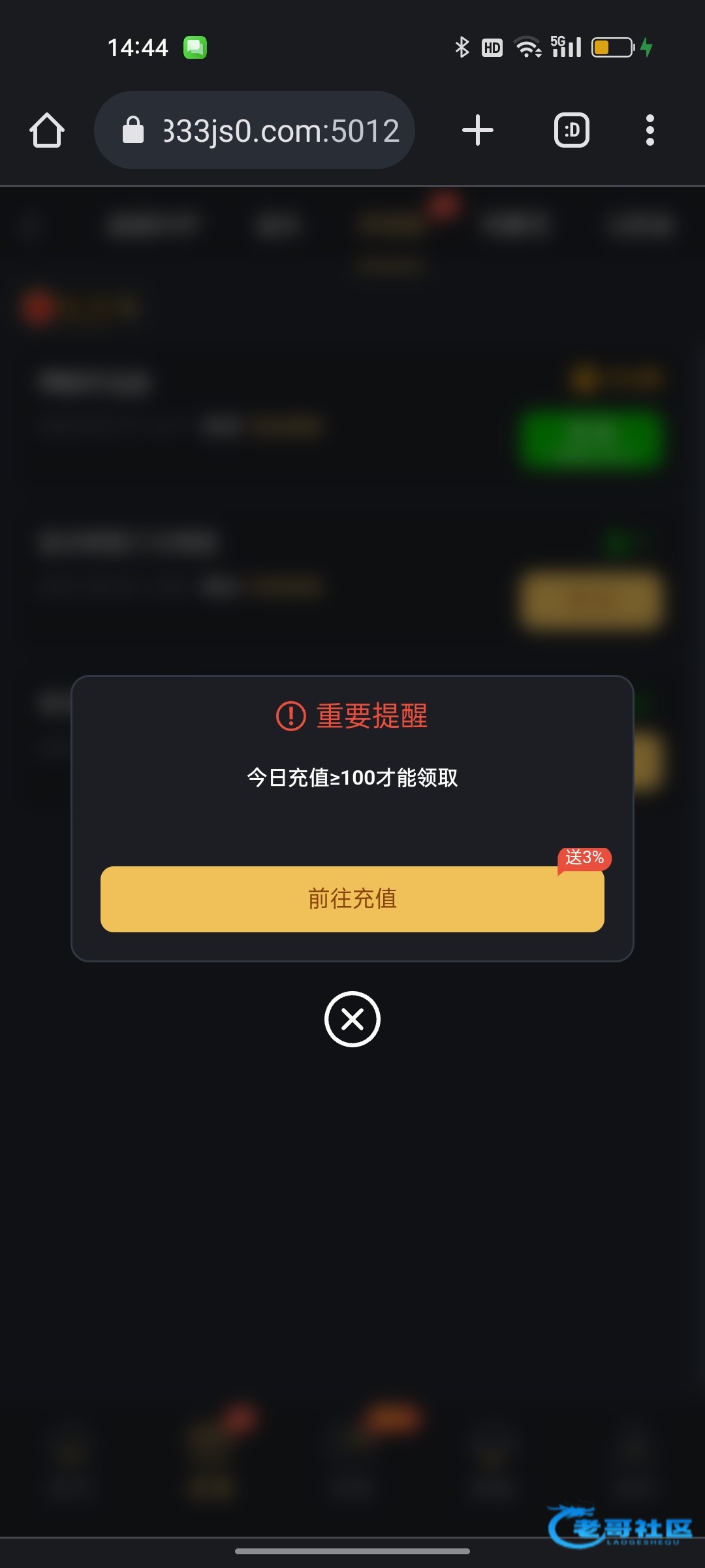 我有一个12一个18,要今天充值100才能领,真畜生这台子,这台子好说都充值了有一万多