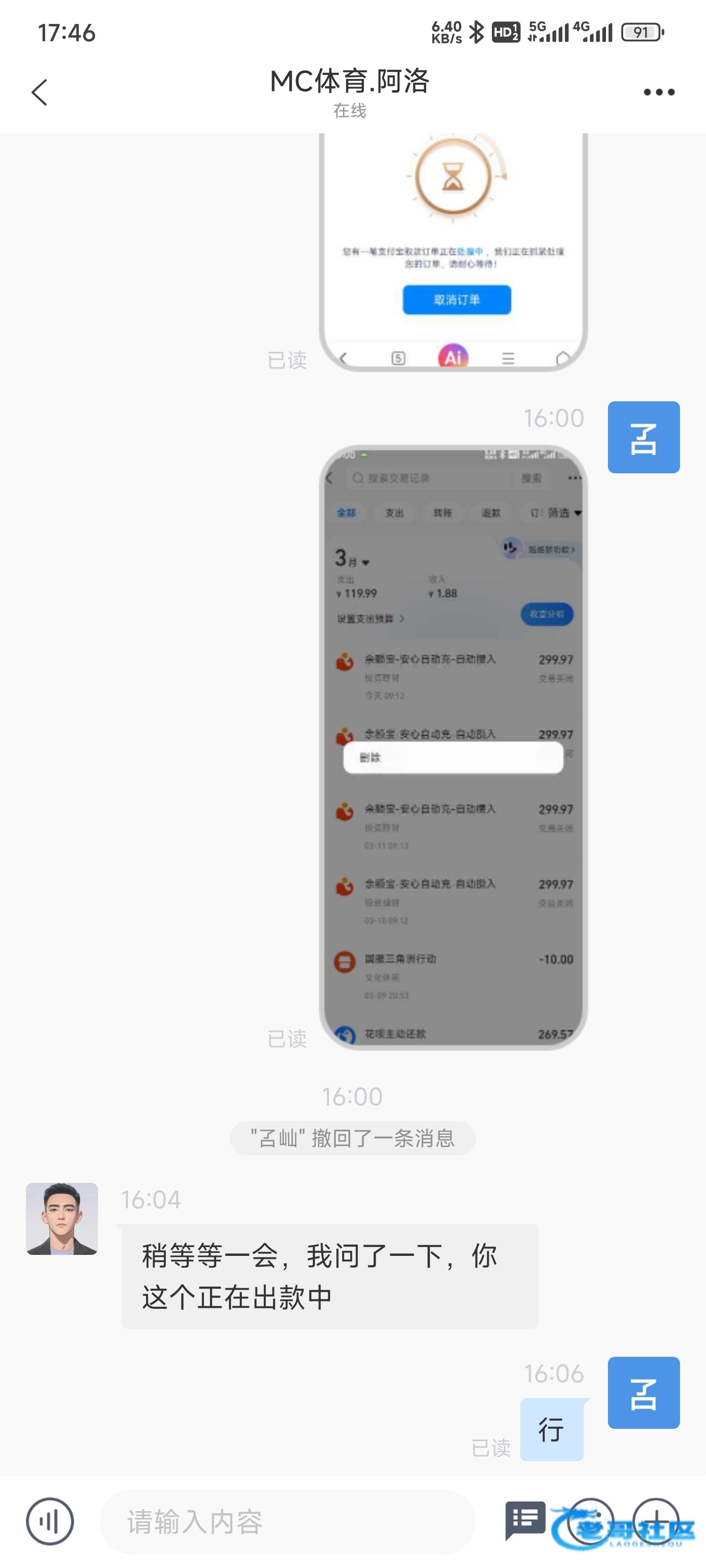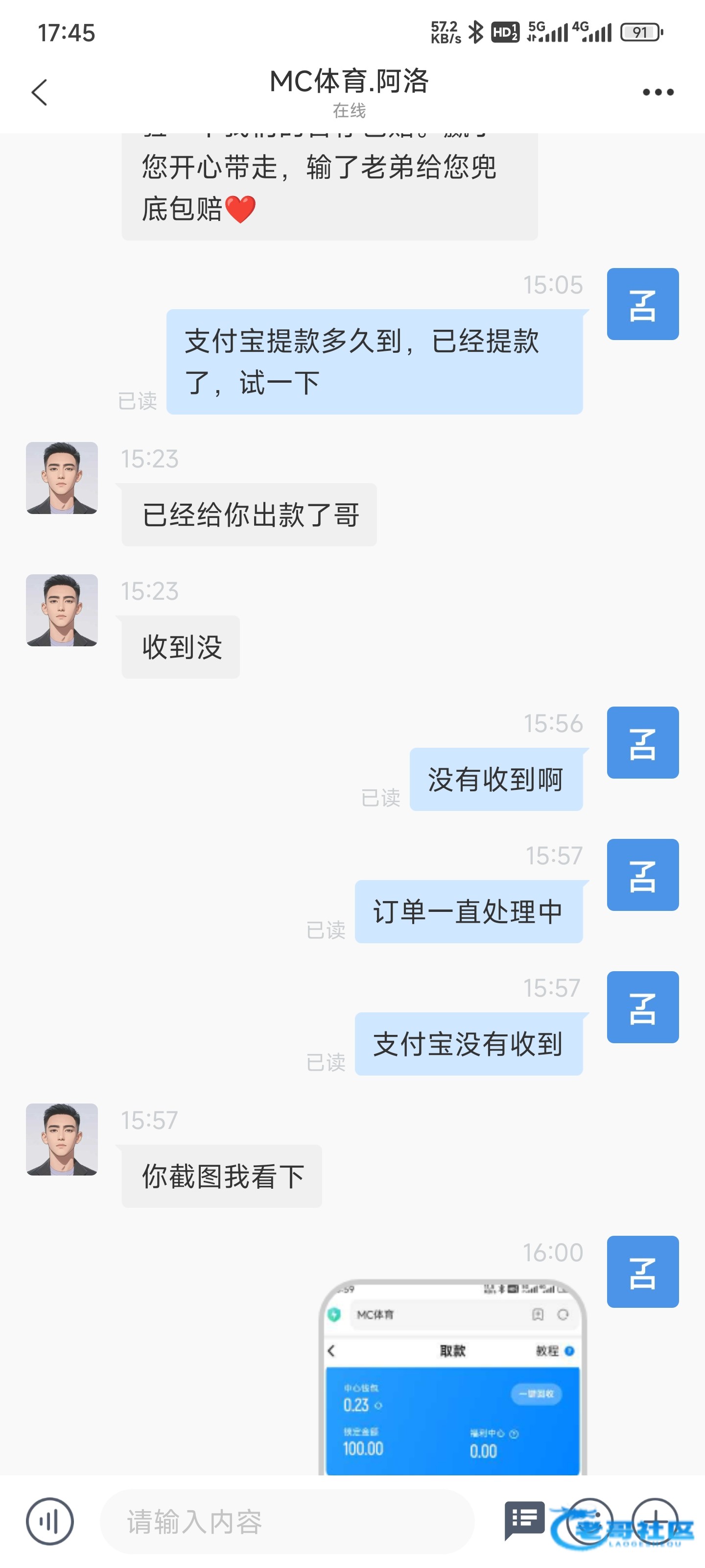 电话打来说送588,然后网页客服,再然后加mc商聊,送了108,然后提300,几分钟后mc商聊封号,接着mc体育也封了,真无语。