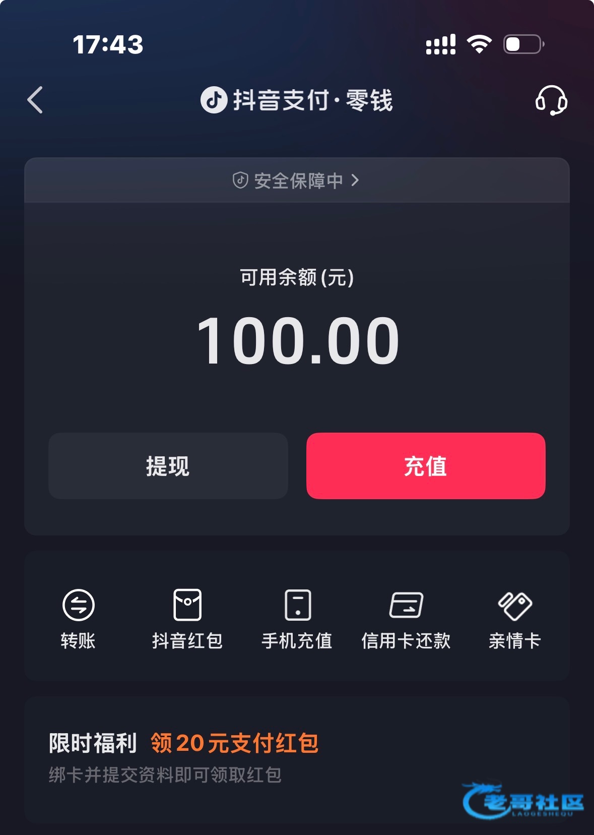 打开抖音钱包找到下面那一栏看见20红包点进去开户之后可以领取20块钱