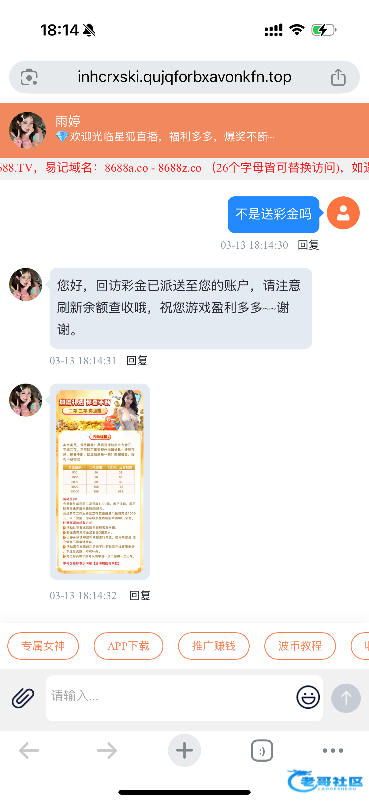 链接8688.TV 回访彩金 漏接电话的可以去问一下客服