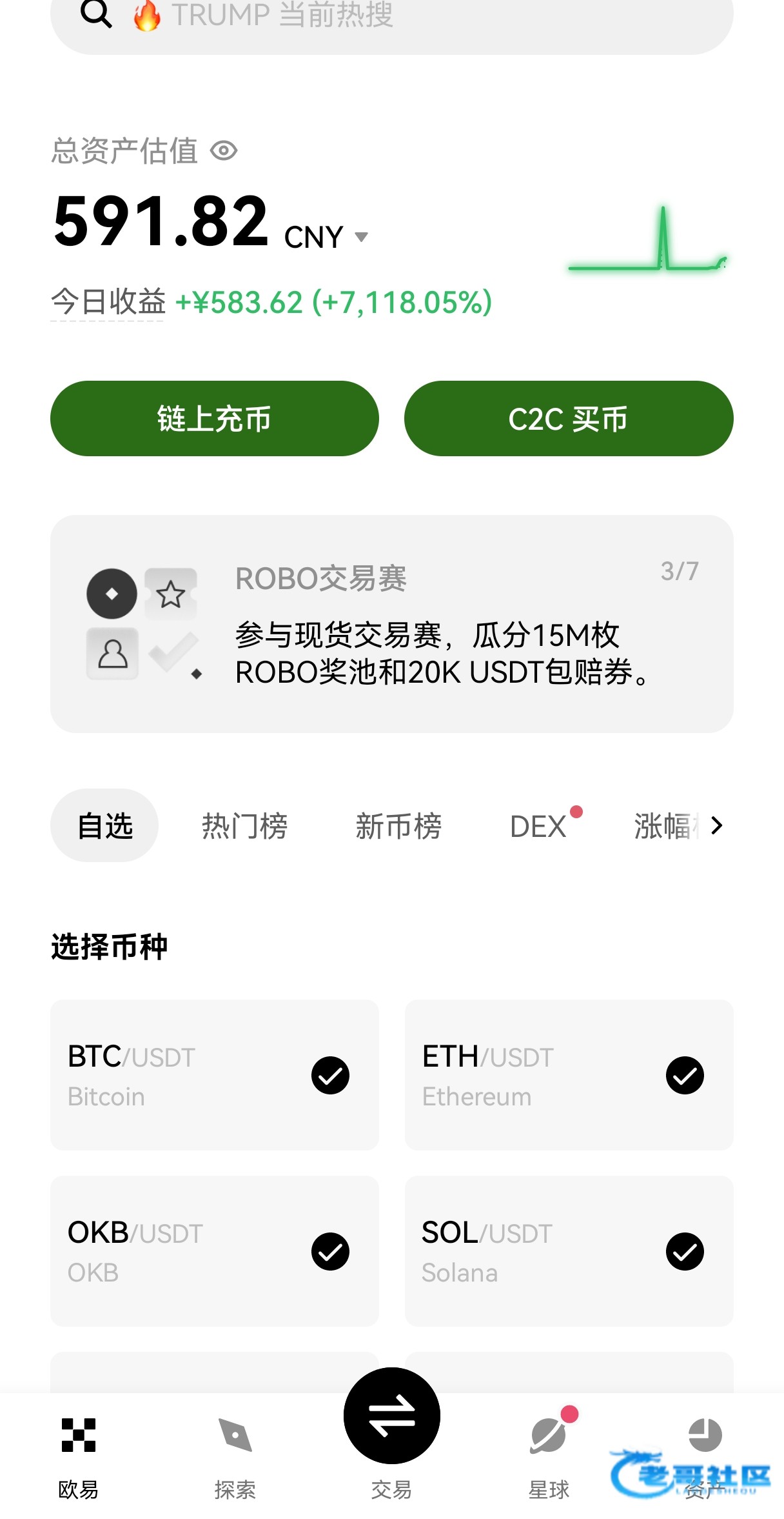 前面老哥发的欧易,忙到现在觉都没睡,确实吃上了,本金是活动领的几u,还有12个箱子没开,好像打不开了