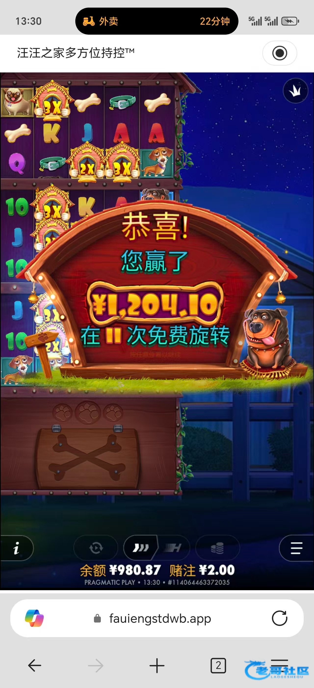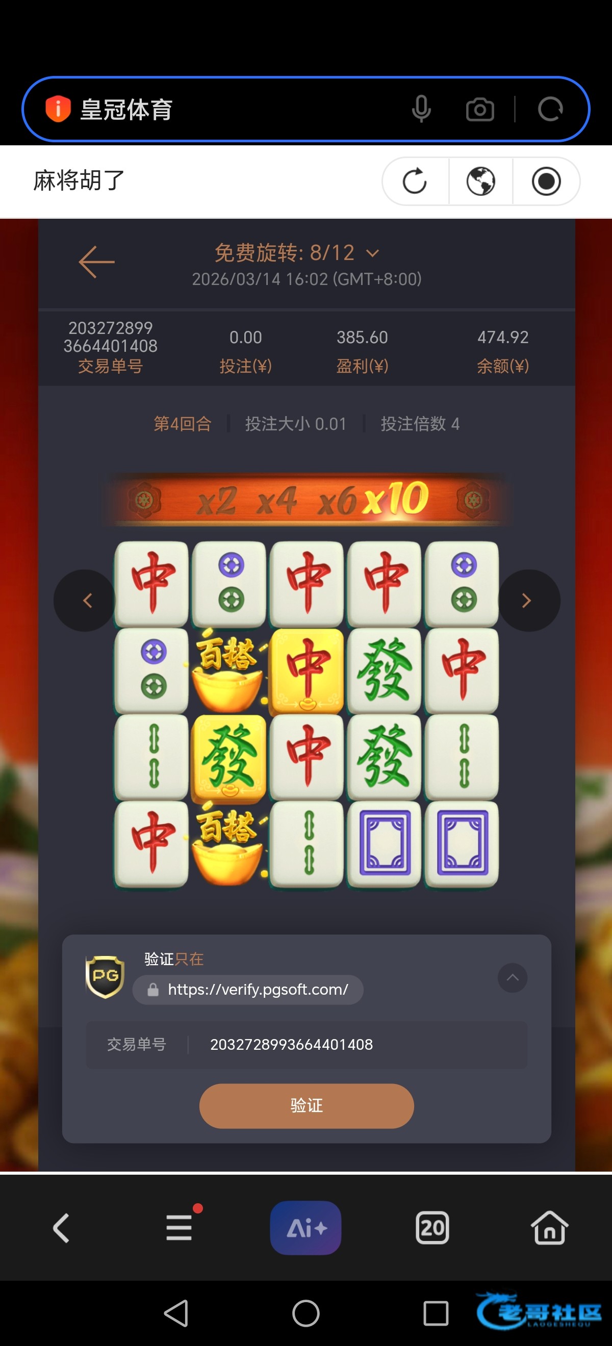 电话刚刚过来了,0.8拉了几下麻1,进免了,爆了10个红中,10倍的,出了400。还没到账